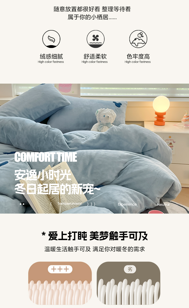 (总)雅居纺家纺 2025新款简约兔绒球球保暖舒适四件套-波点,波点-白咖,波点-粉黄,波点-咖,波点-蓝黄