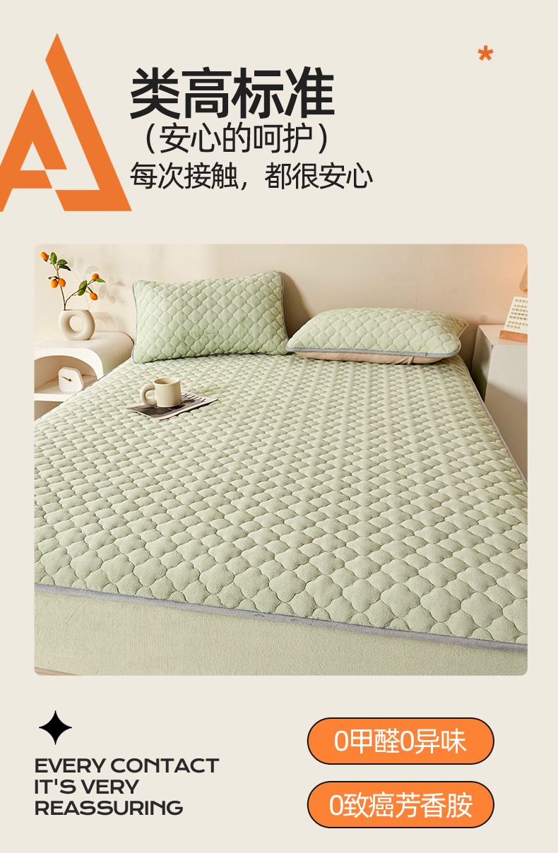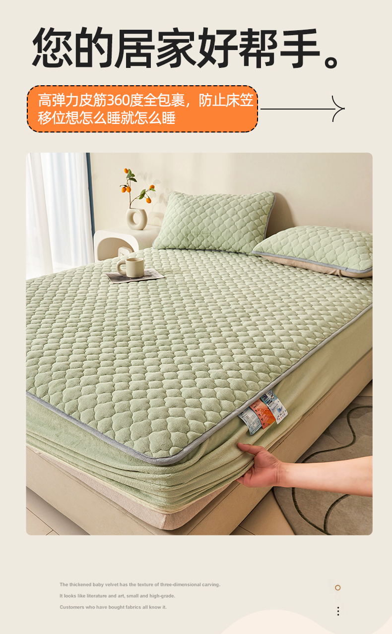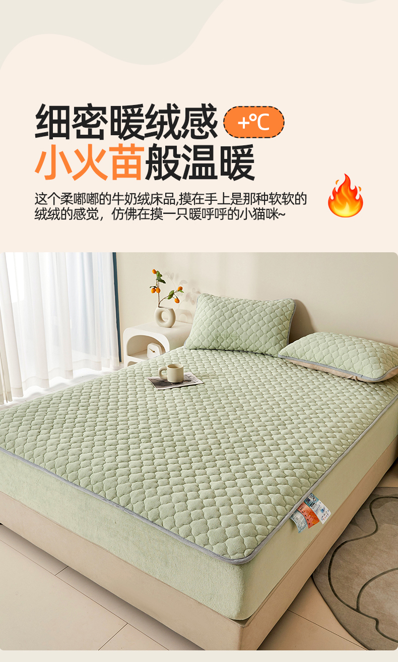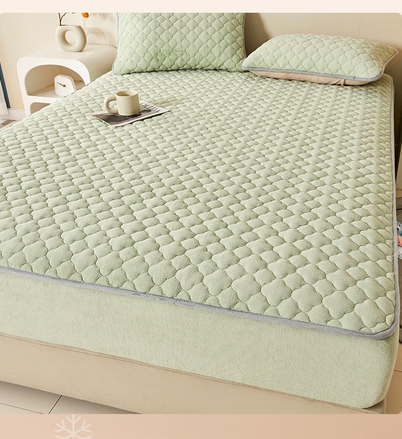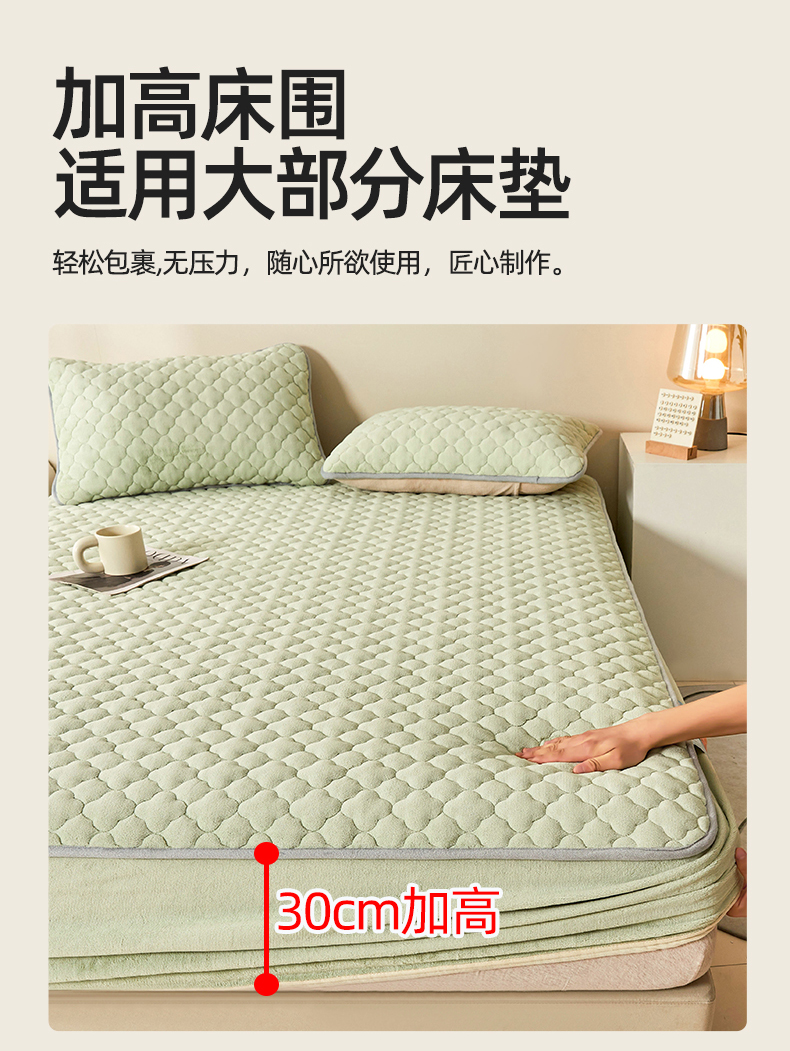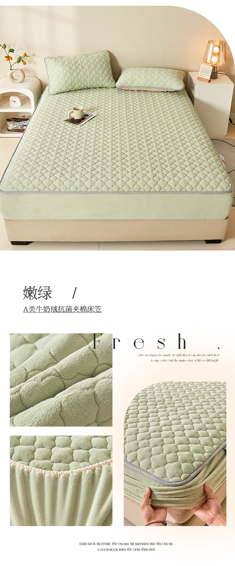商品名称:雯豆 2023新品纯色牛奶绒夹棉床笠床垫保护套A类保暖加厚床笠 牛奶绒床笠-嫩绿