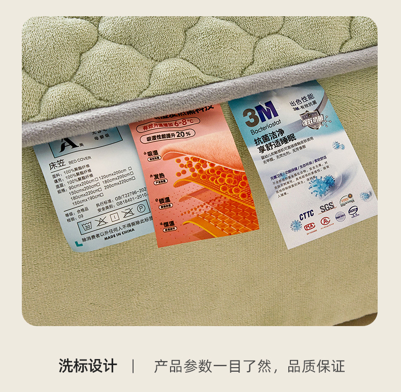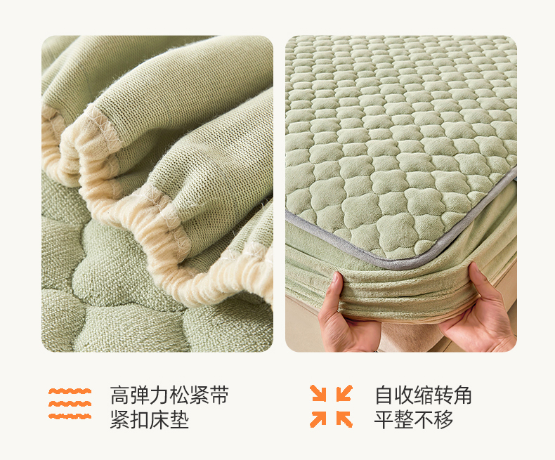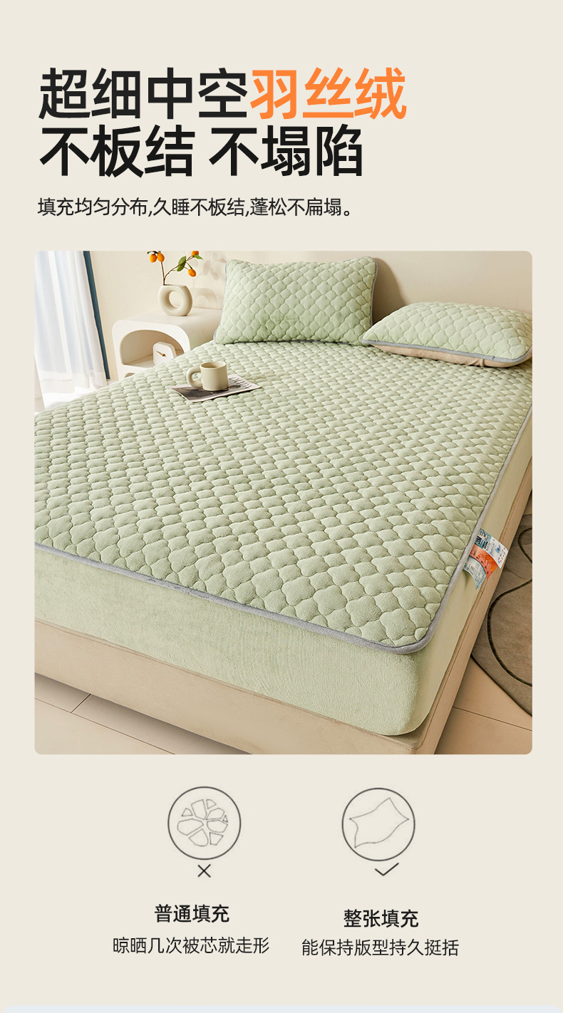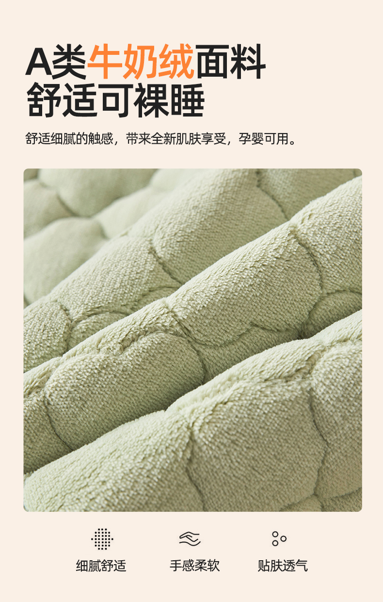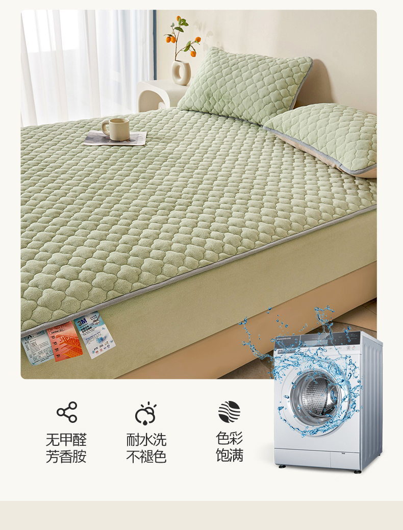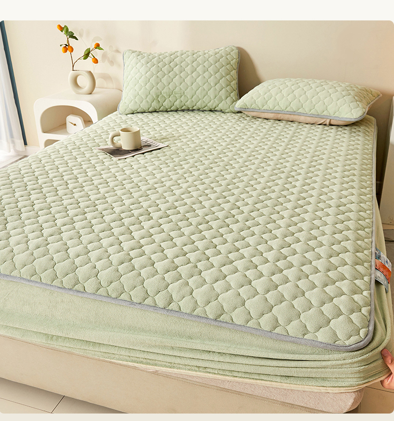 商品名称:雯豆 2023新品纯色牛奶绒夹棉床笠床垫保护套A类保暖加厚床笠 牛奶绒床笠-嫩绿