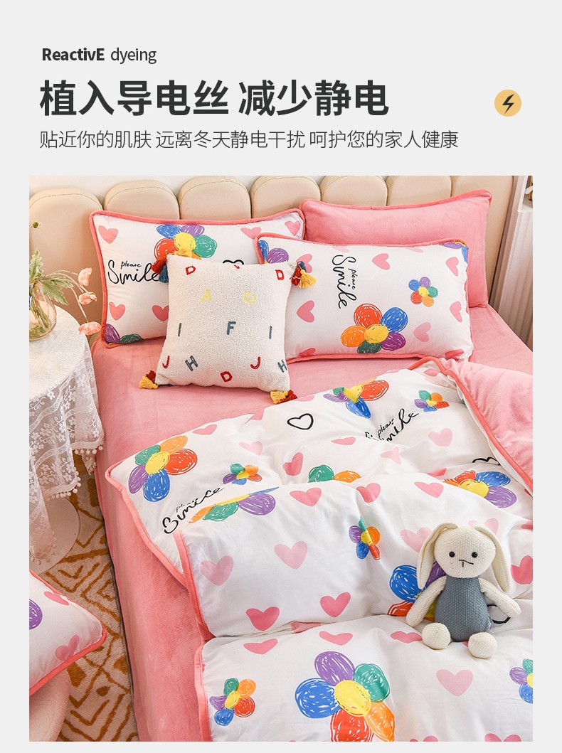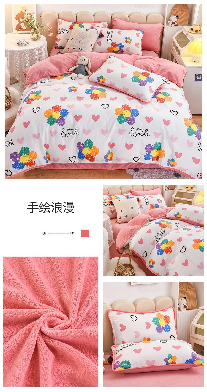 当前位置: 91家纺网 > 商品网购 > 床品套件 > 四件套 > 牛奶绒四件套 > 琪琪阁 2023新款A棉B绒棉加绒牛奶绒四件套单被套 手绘浪漫