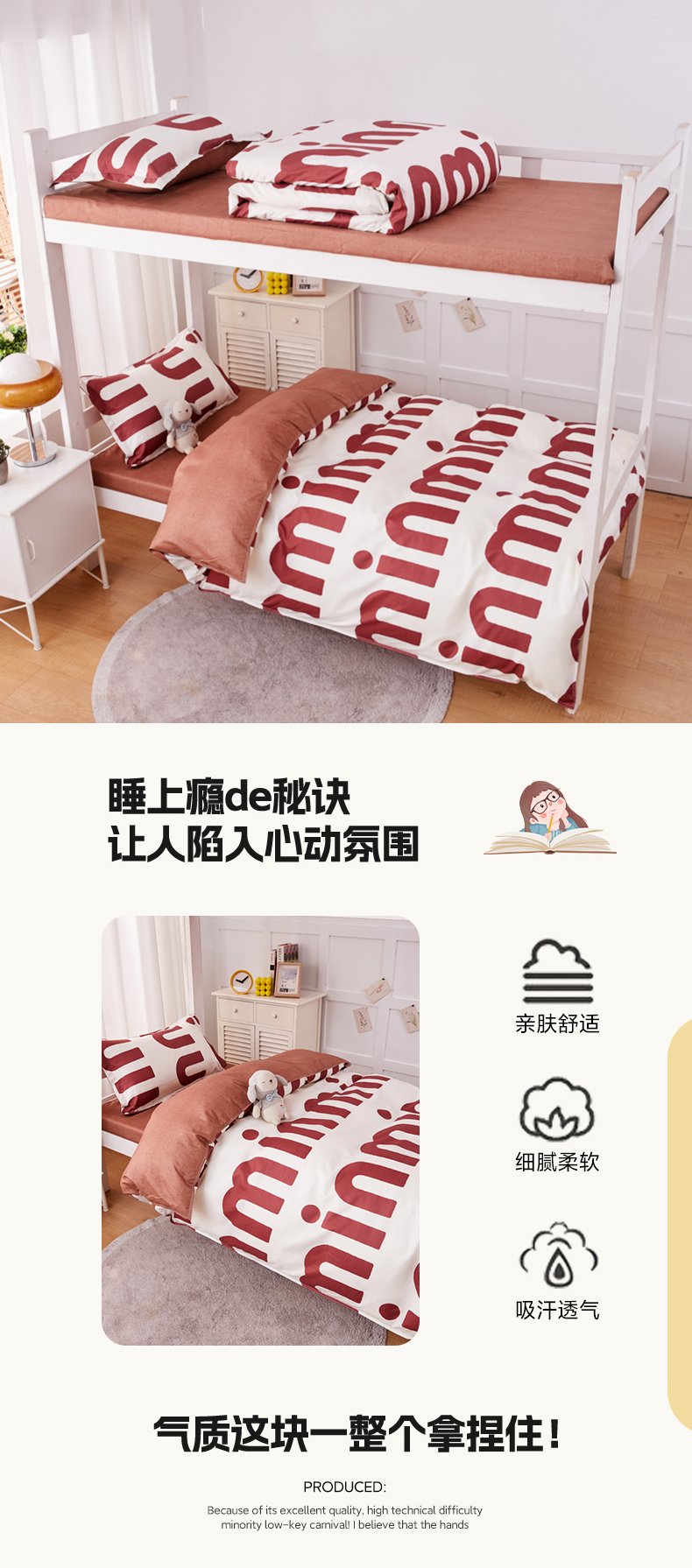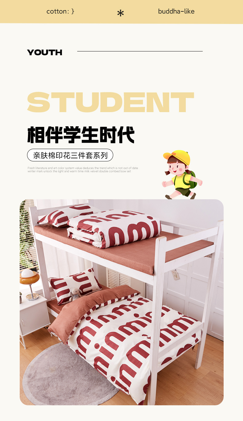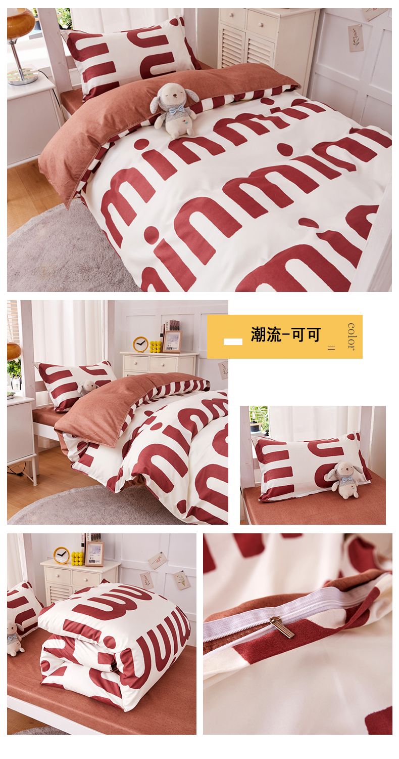 商品名称:2023新款亲肤棉美棉芦荟棉三件套美棉(8月)学生宿舍床 潮流-可可