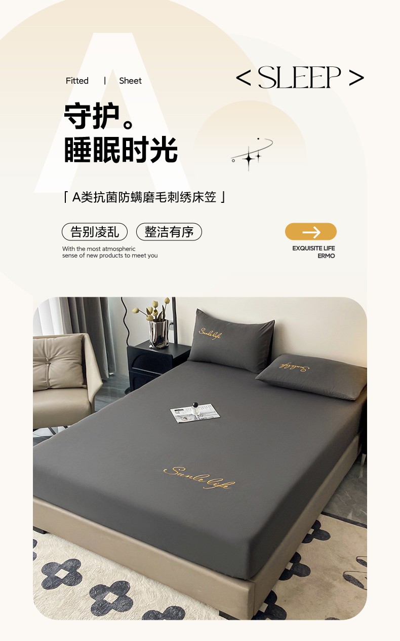 当前位置: 91家纺网 > 商品网购 > 床品套件 > 三件套 > 古吉梦 2023新款A类抗菌防瞒磨毛刺绣S床笠系列 磨毛S床笠-高级灰
