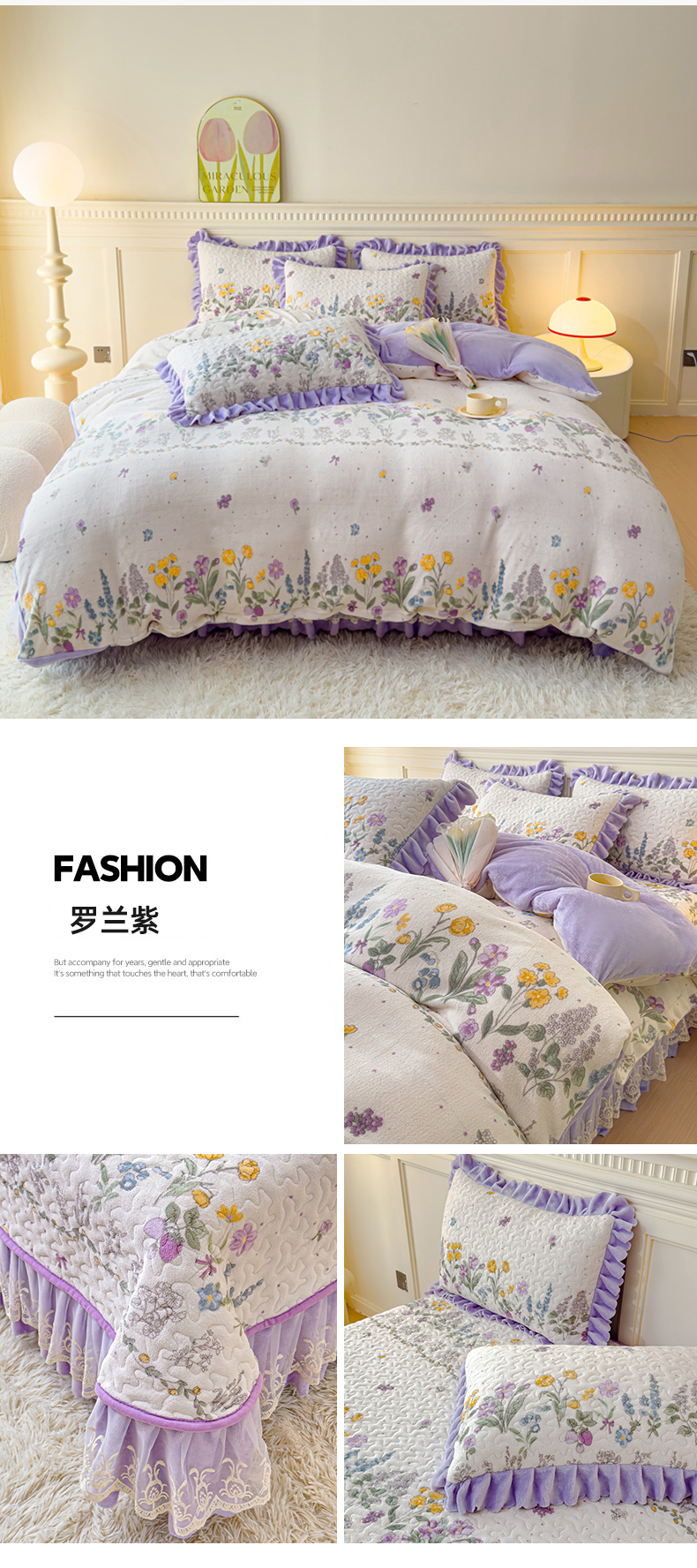 (总)铠畅家纺 2025新款牛奶绒花边床盖四件套-唯美,唯美爵士蓝,唯美香草绿,唯美香妃玉,唯美星辰灰,唯美星空紫,唯美珍珠白