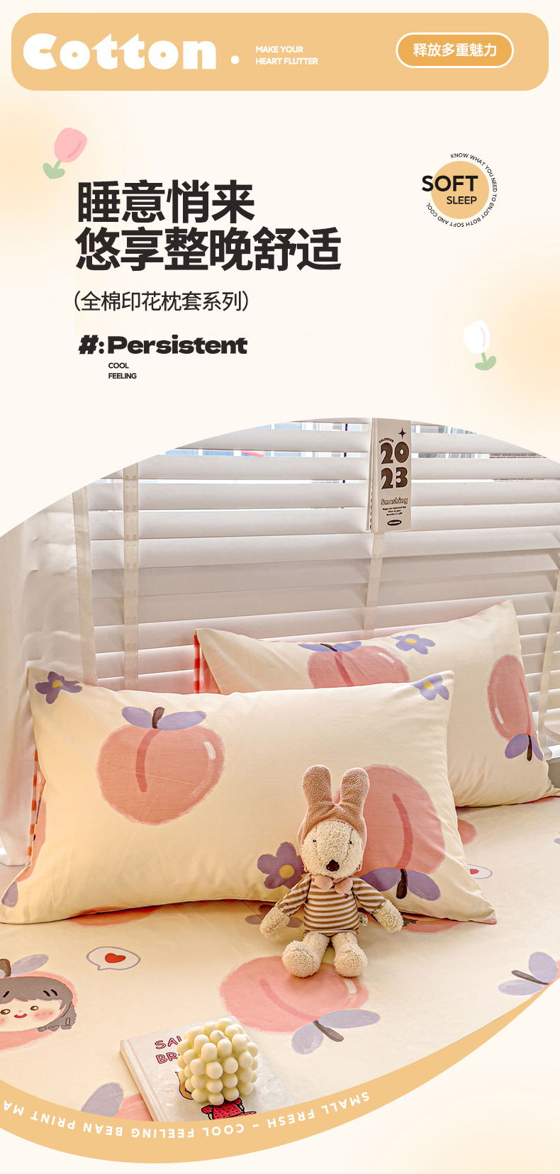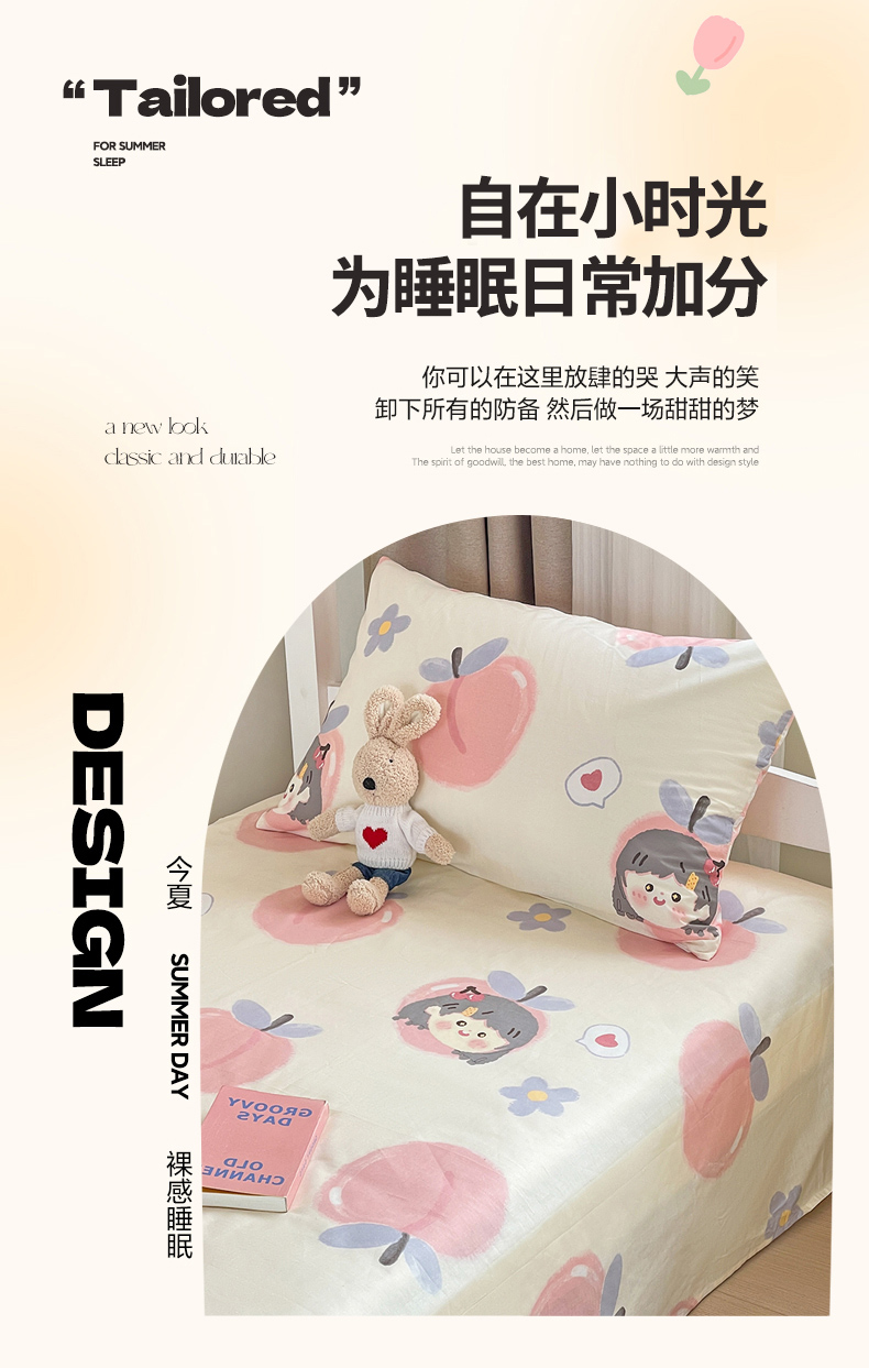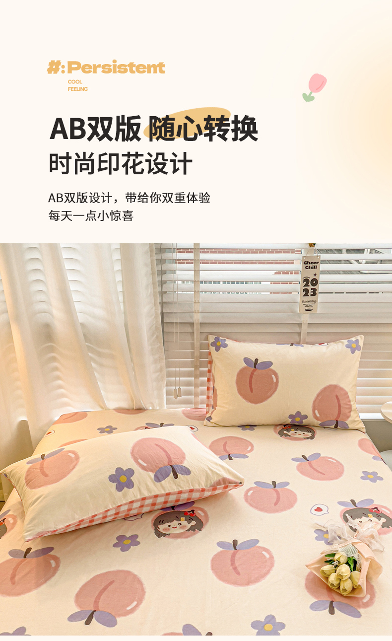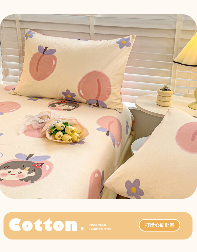 名兮家居 2023新款全棉简约印花枕套 蜜桃女孩