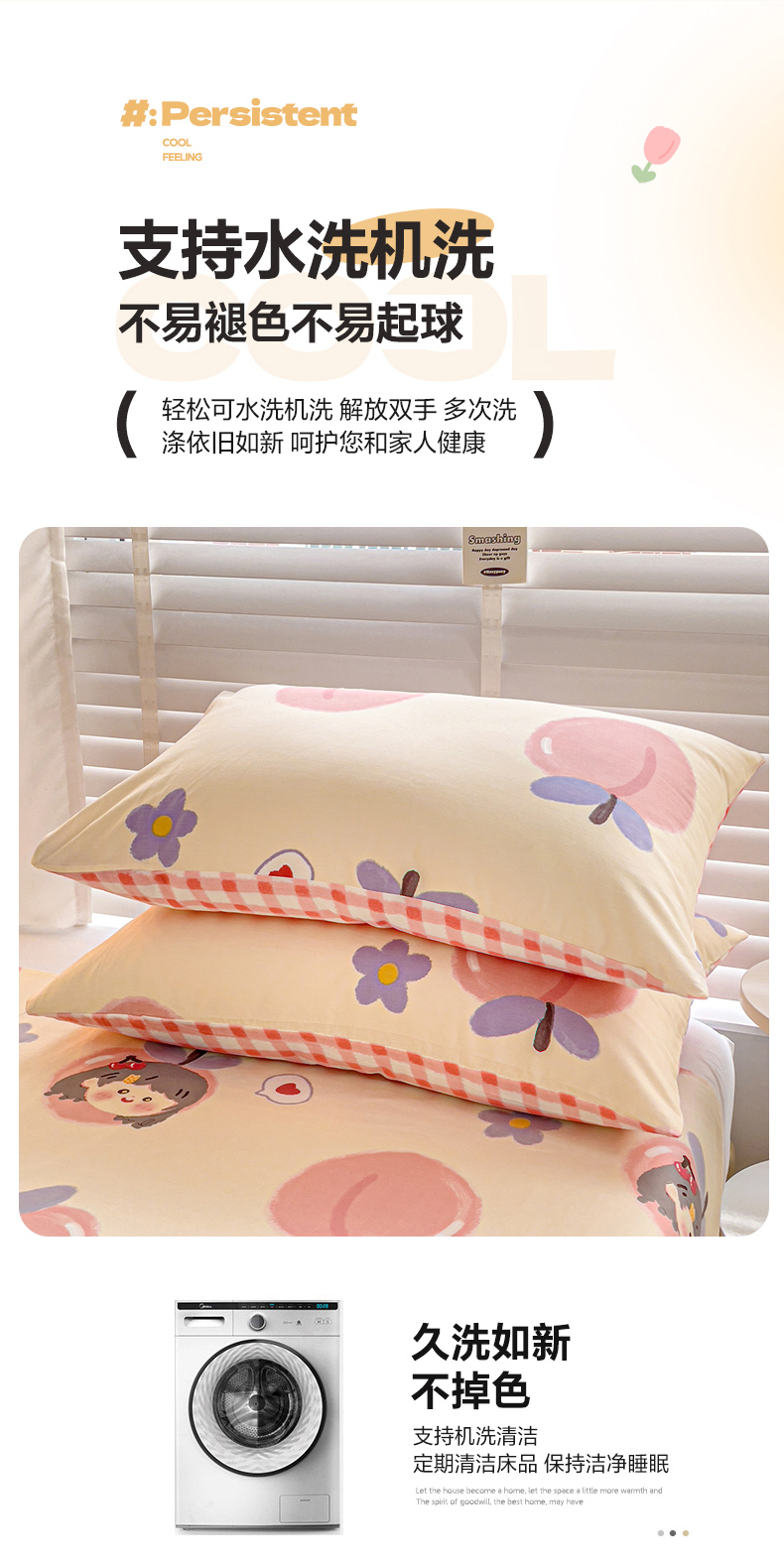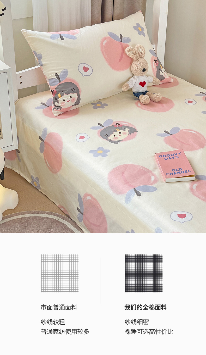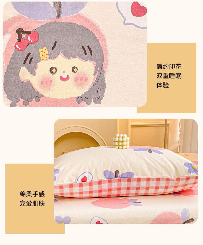 商品名称:名兮家居 2023新款全棉简约印花枕套 蜜桃女孩