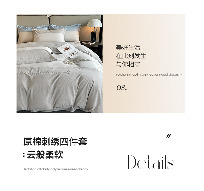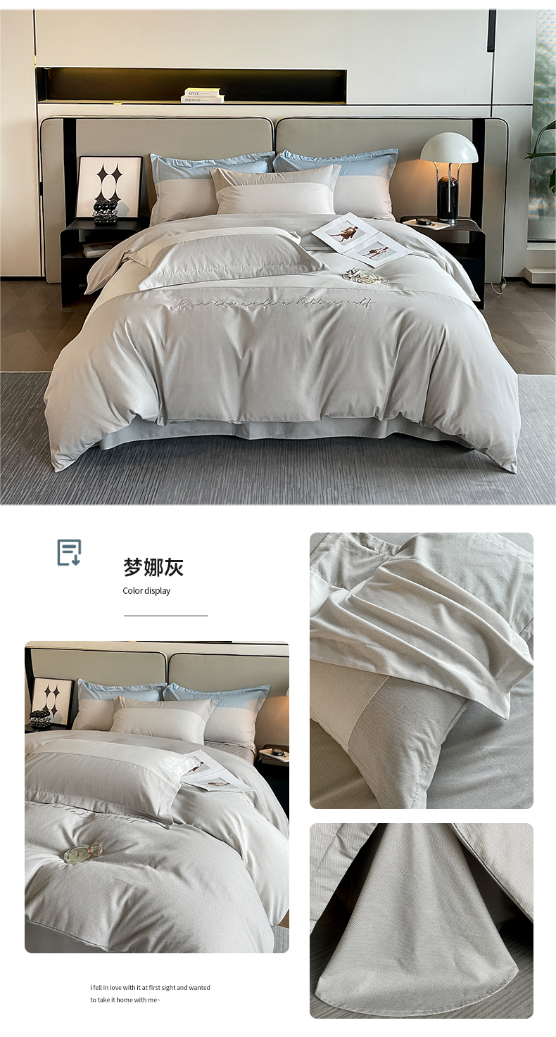 当前位置: 91家纺网 > 商品网购 > 床品套件 > 四件套 > 全棉普通四件套 > 金麦 2023新款全棉磨毛原棉宽边刺绣四件套系列-梦娜 梦娜-灰