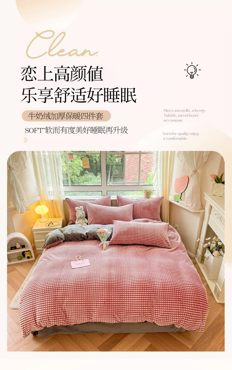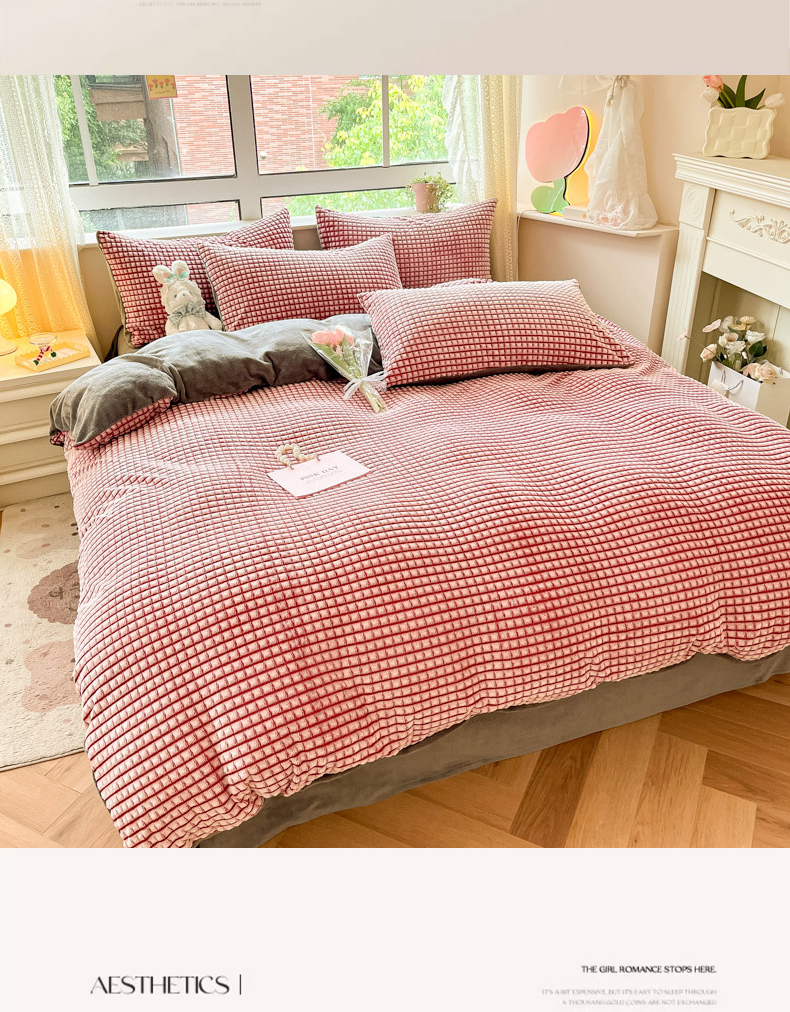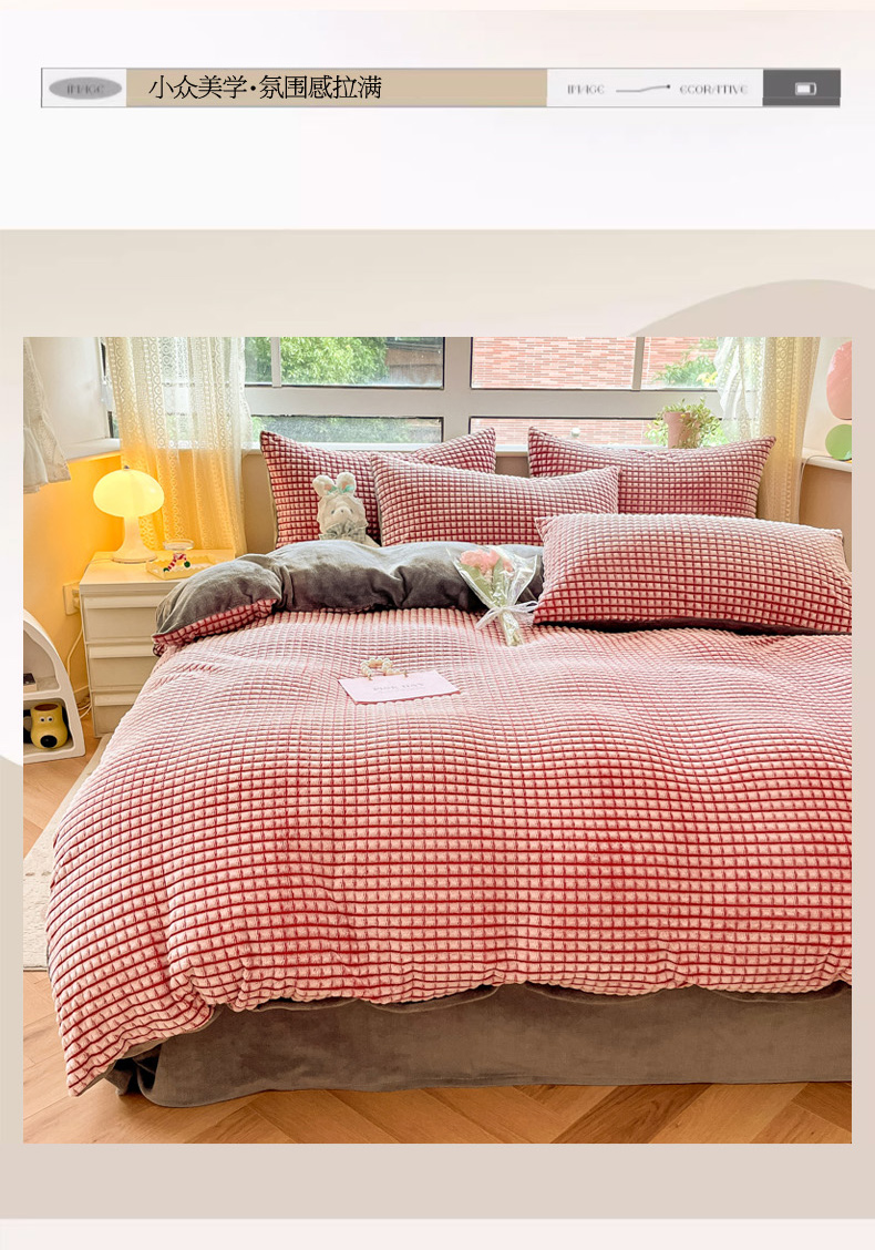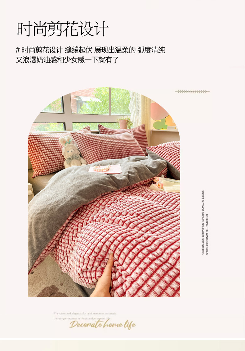 商品名称:慕澄家纺 2024简约款剪花牛奶绒四件套 简约-红