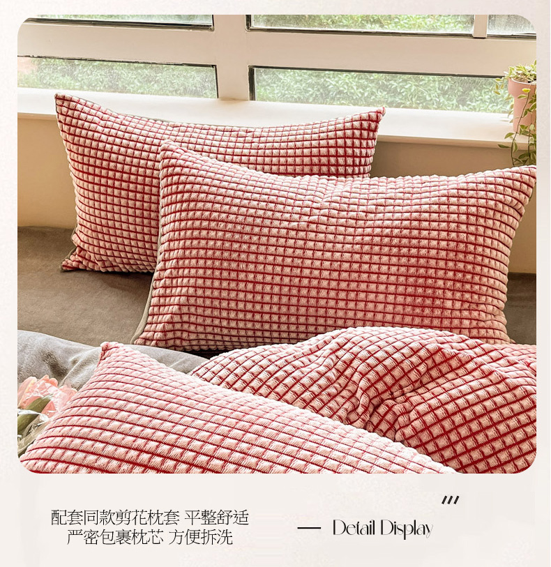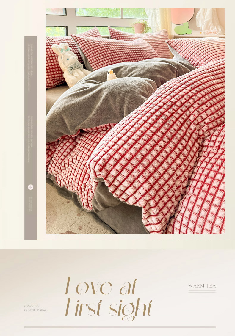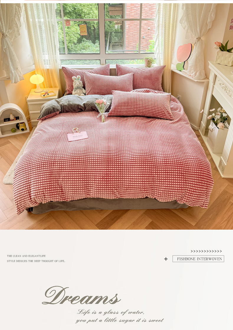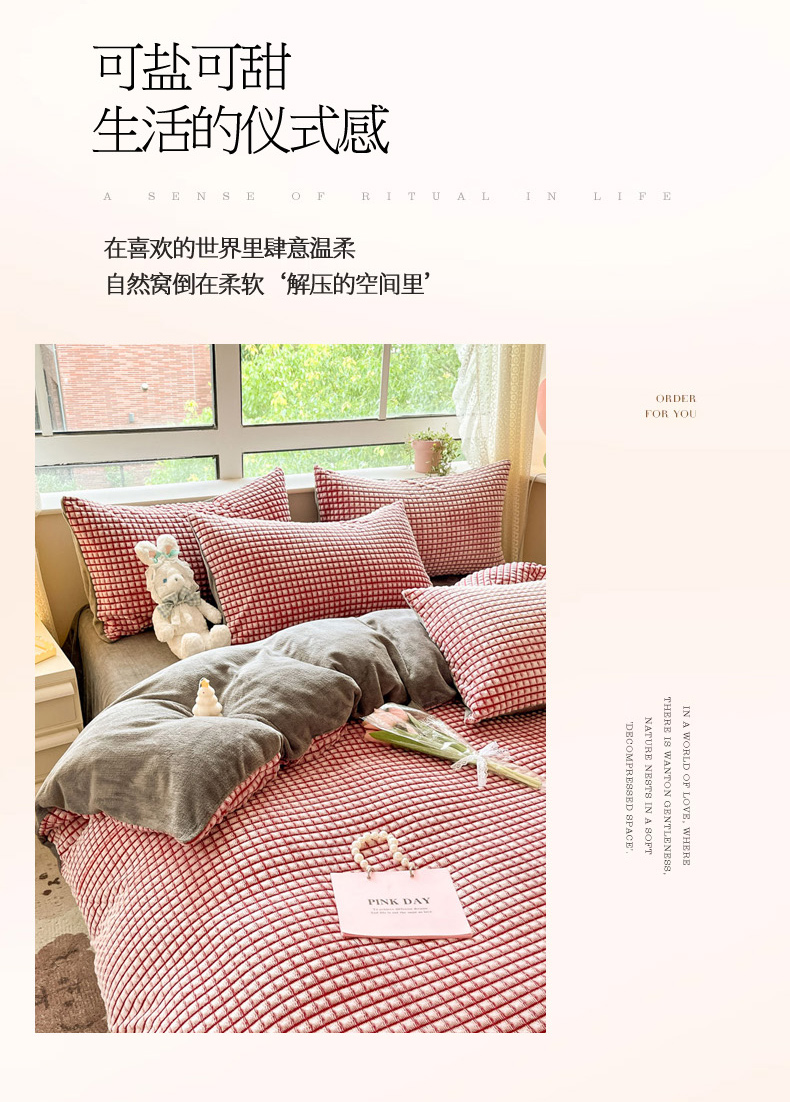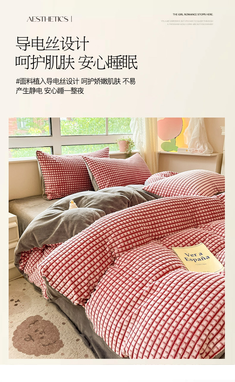 商品名称:慕澄家纺 2024简约款剪花牛奶绒四件套 简约-红
