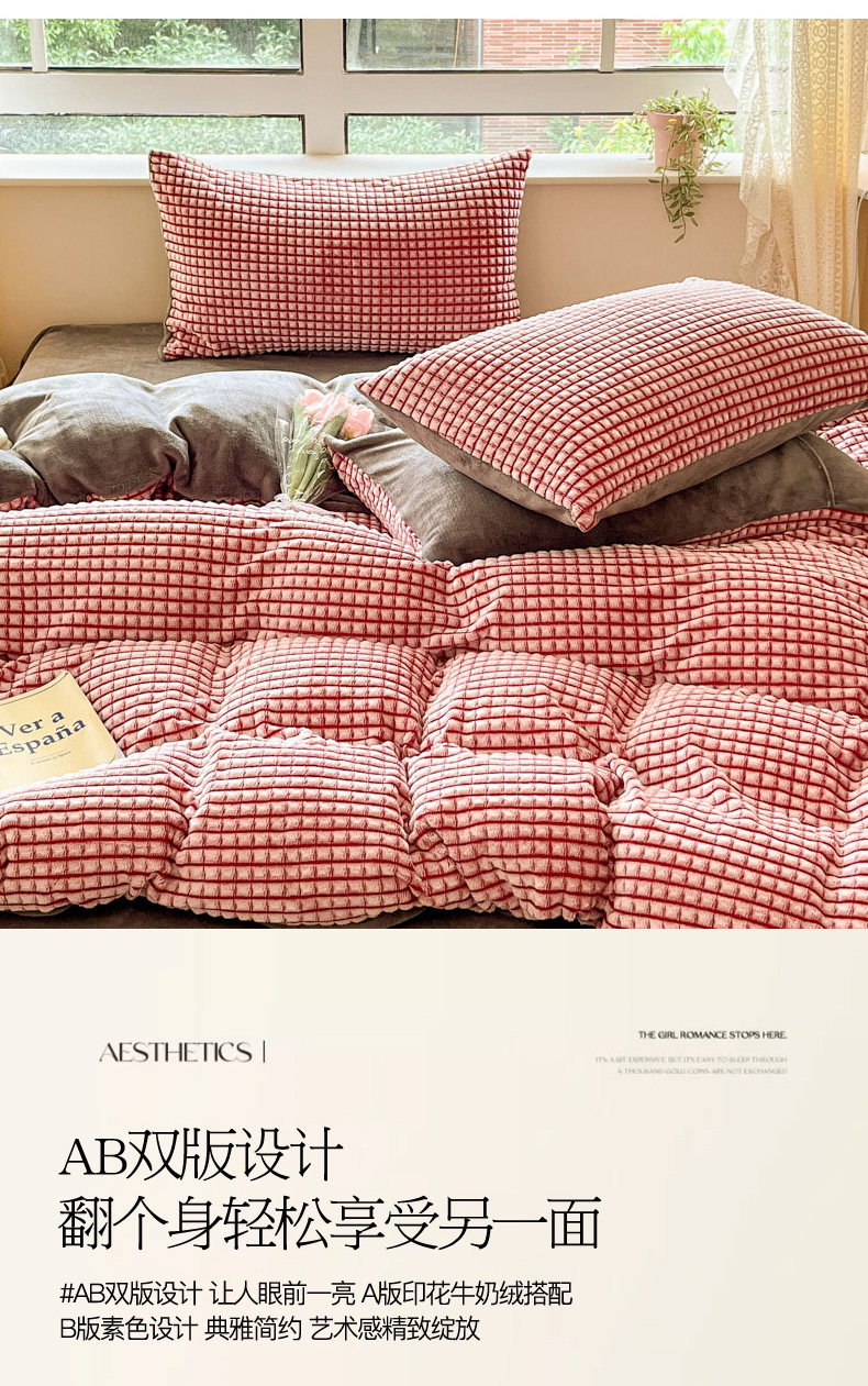 慕澄家纺 2024简约款剪花牛奶绒四件套 简约-红