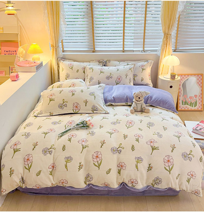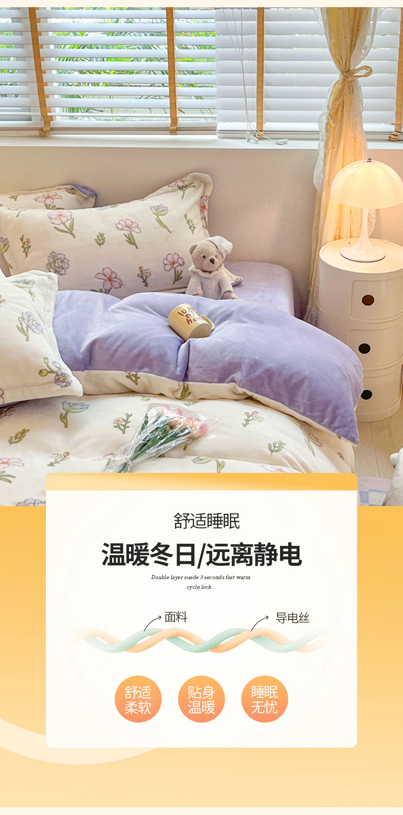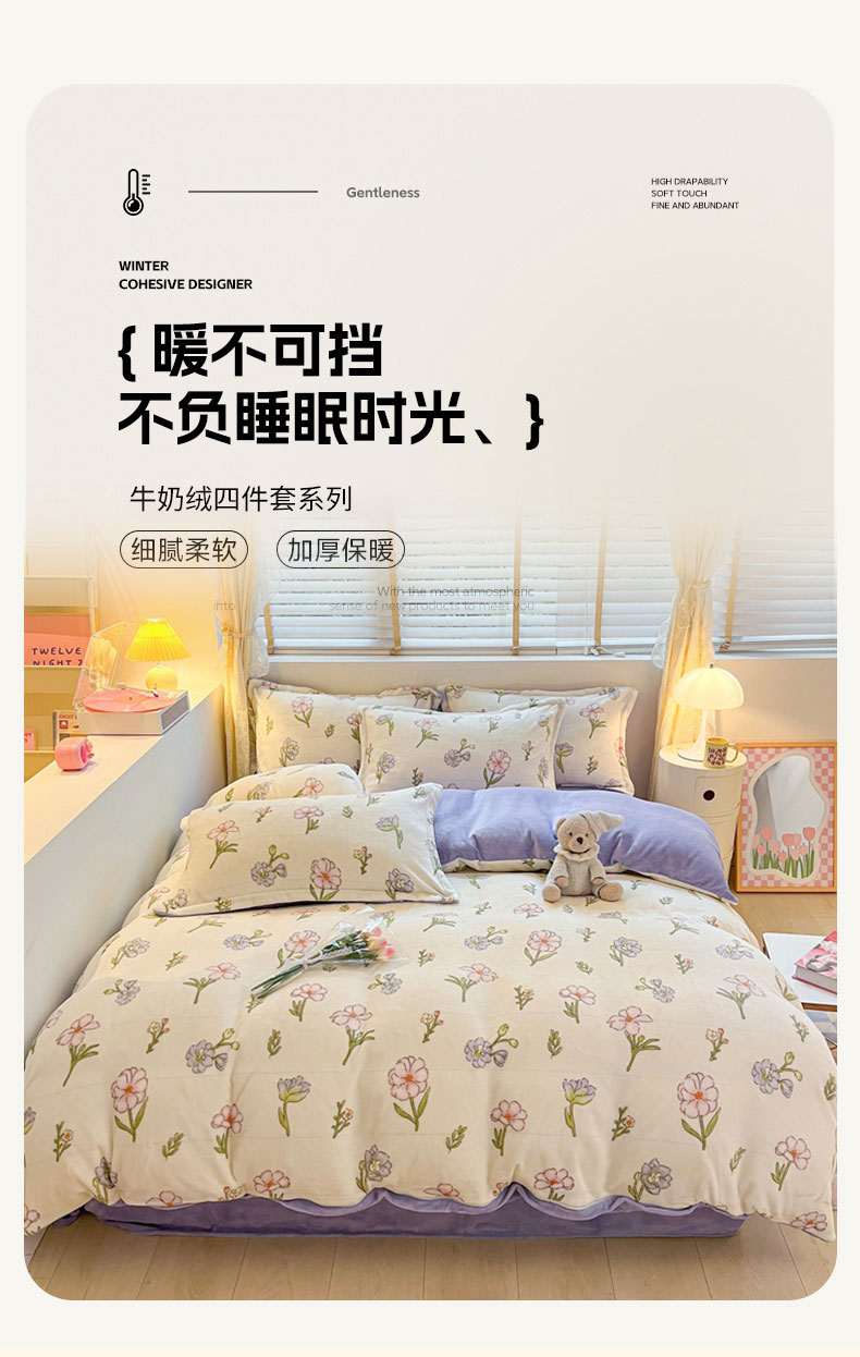 (总)康纳利 2025新款亲舒适加厚牛奶绒花边四件套,KT花园,布丁,粉萌兔,花眠语,幻蝶-白,幻蝶-粉,礼物小咪,凝夜紫