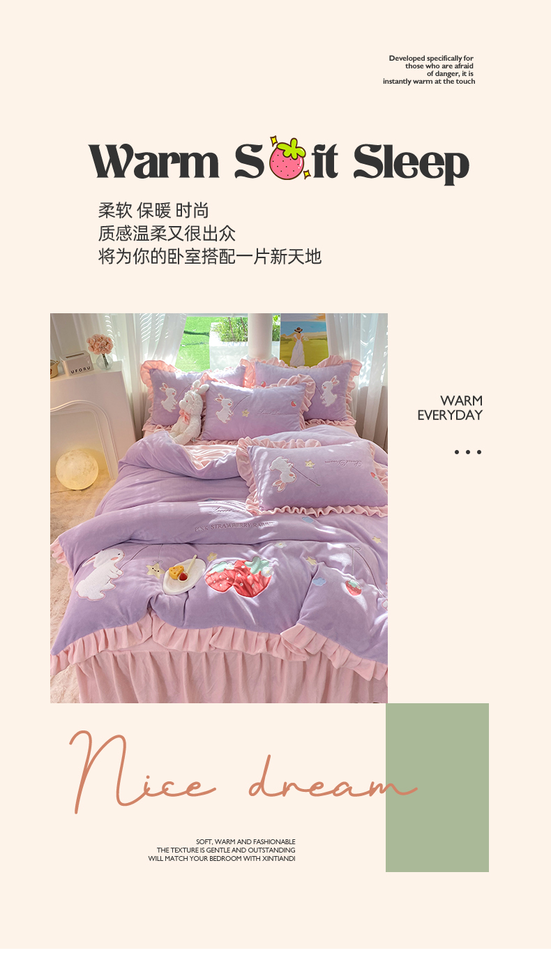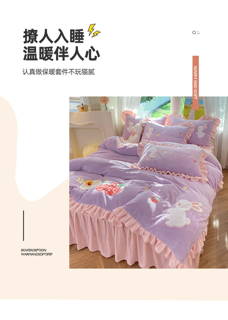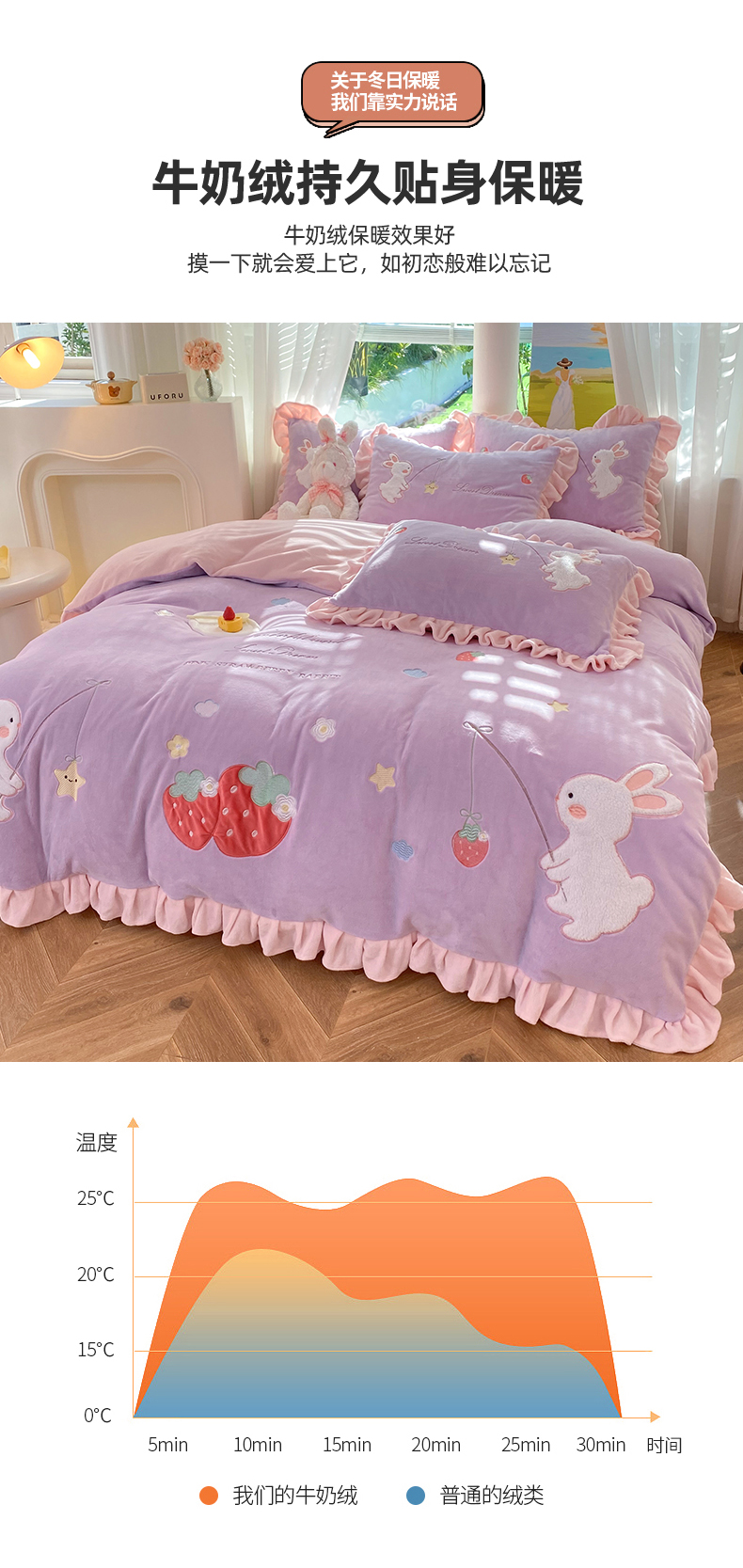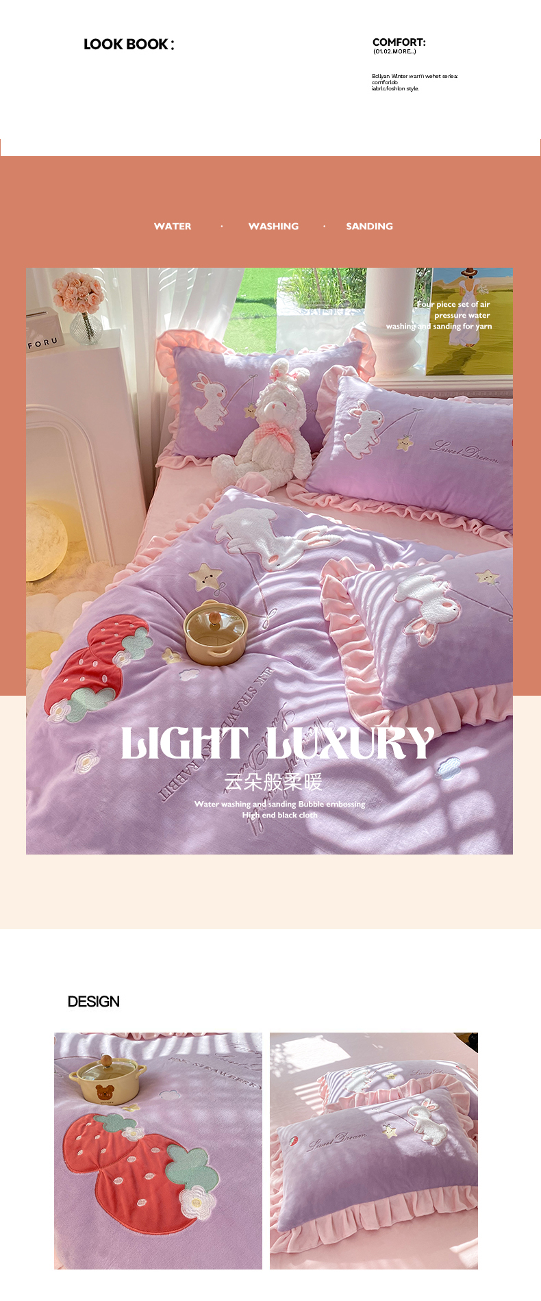 当前位置: 91家纺网 > 商品网购 > 床品套件 > 四件套 > 牛奶绒四件套 > 丝印良品 2023新款牛奶绒摘星兔贴布绣牛奶绒四件套 摘星兔-紫粉