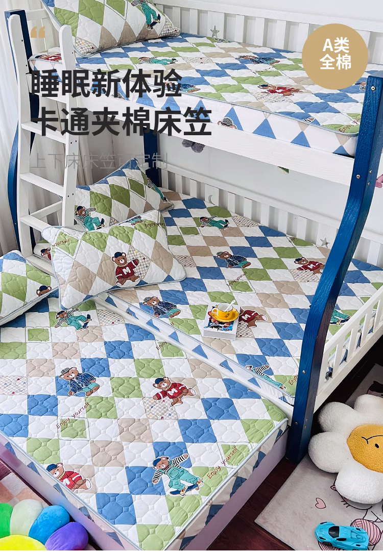 • 91家纺网 家纺一手货源 找家纺 小虾米 2023新款全棉卡通上下床夹棉系列床笠 欢乐熊