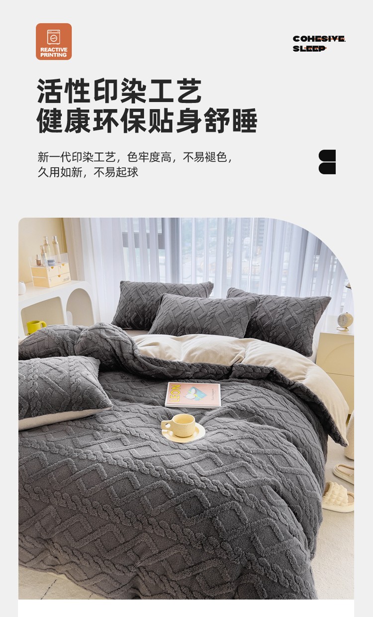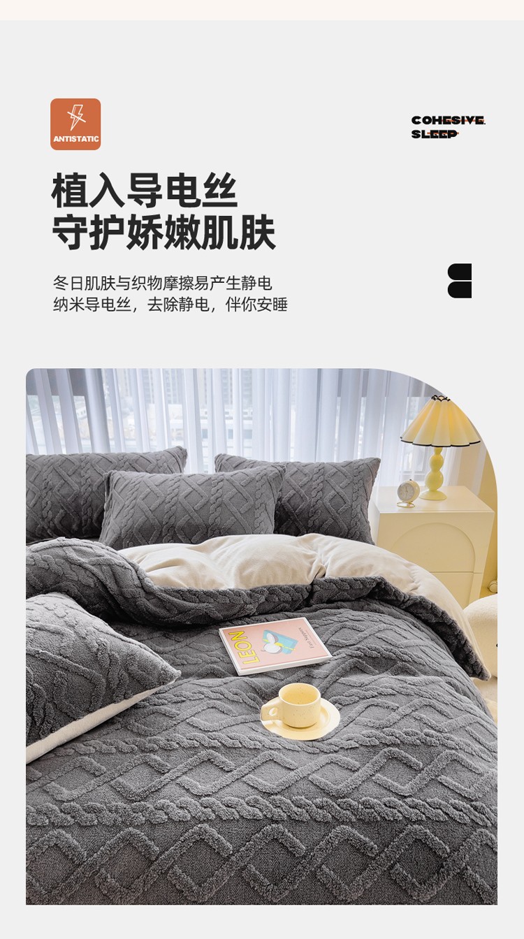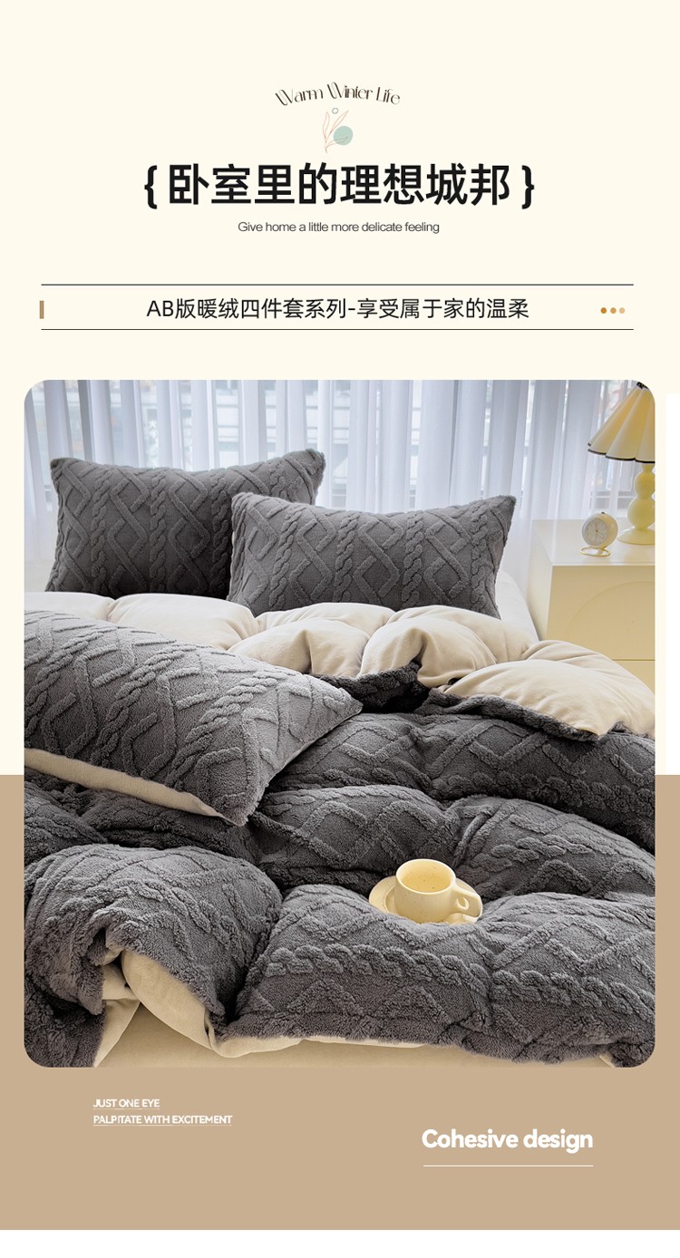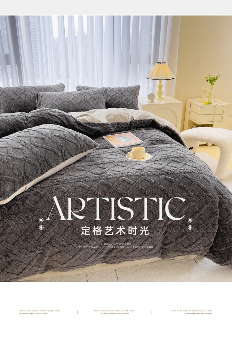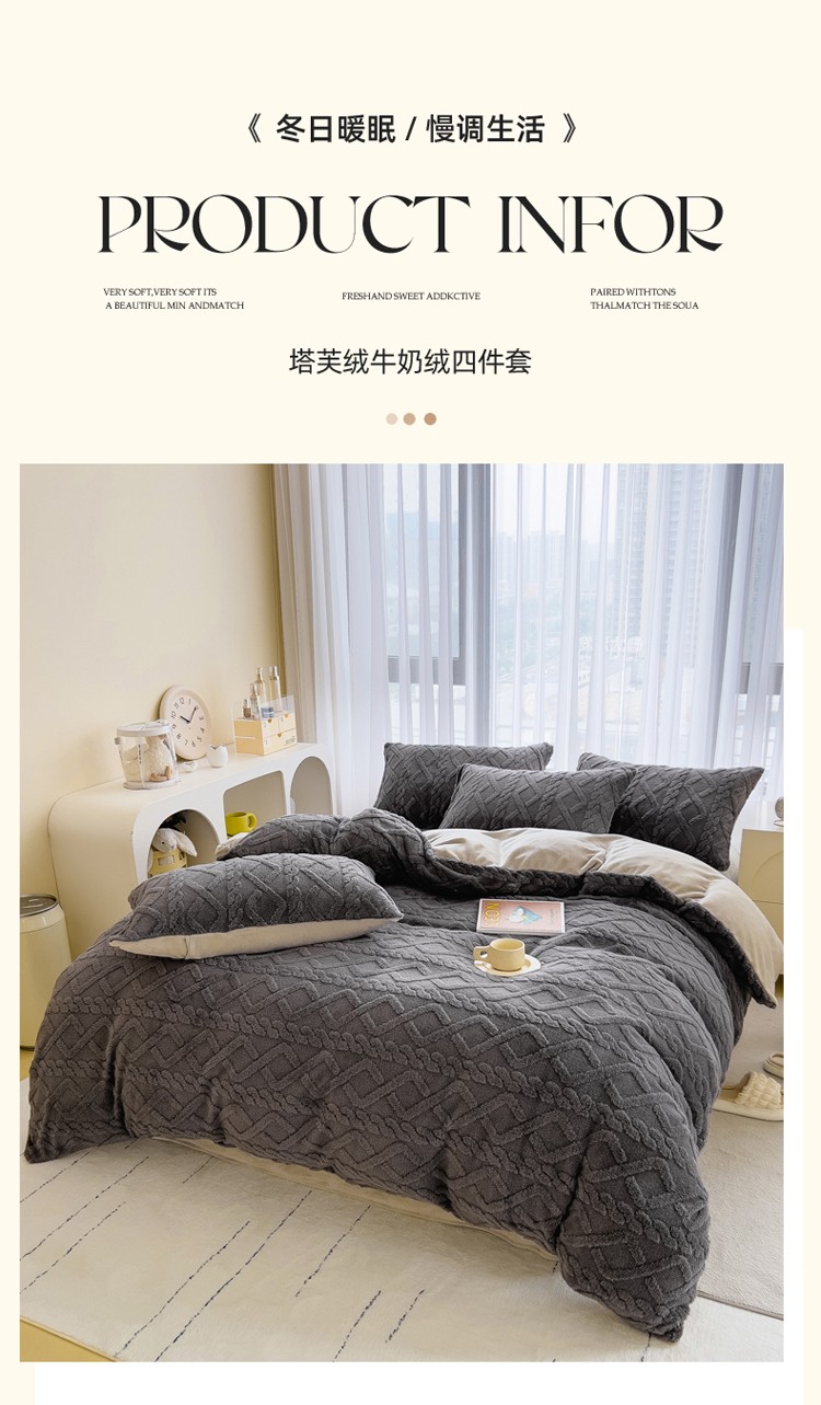 商品名称:欧冠 2023秋冬加厚塔芙绒简约款牛奶绒四件套 深灰
