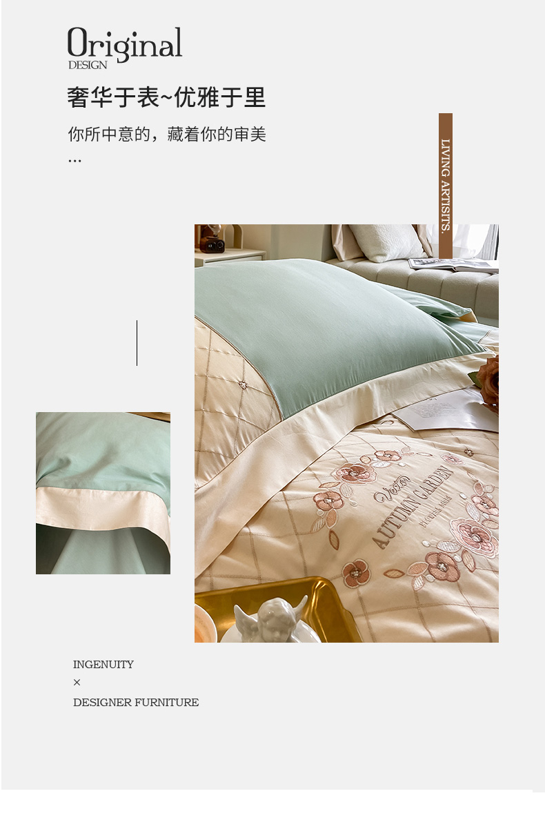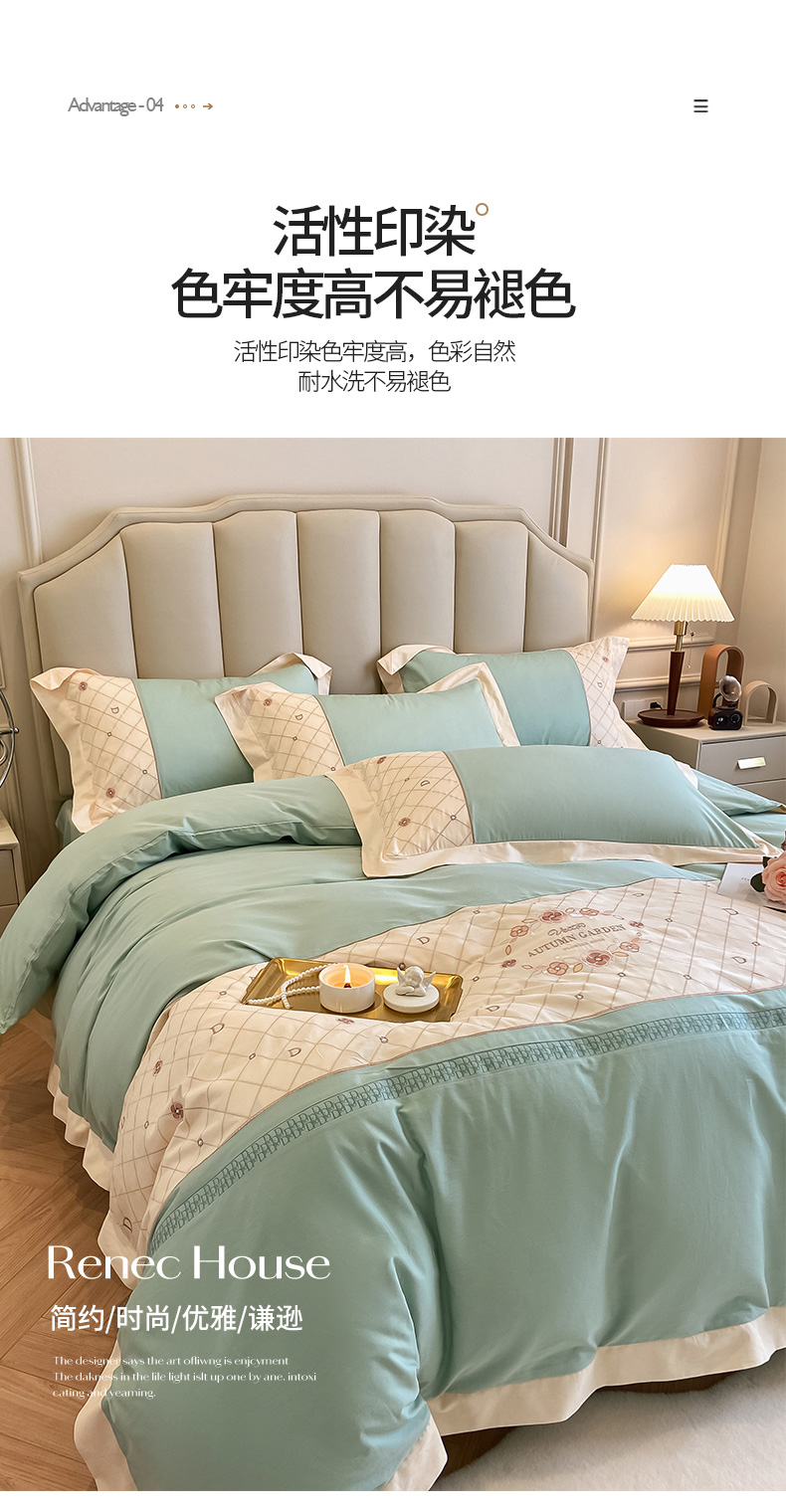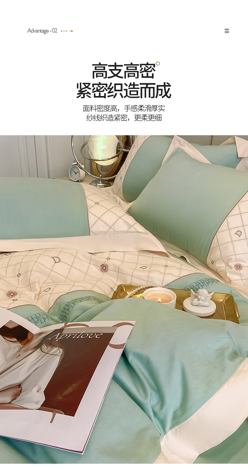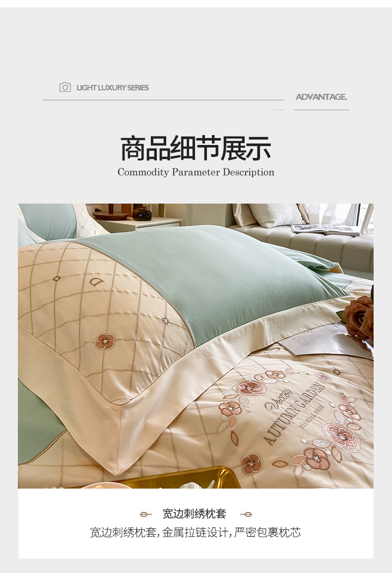 商品名称:(总)丝印良品 2025秋冬保暖60S全棉刺绣拼接菲曼系列四件套