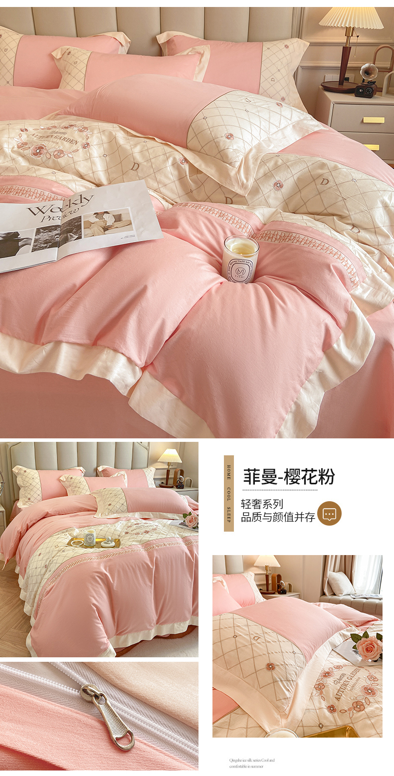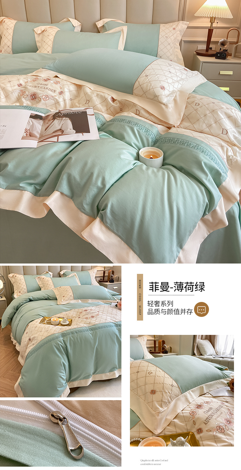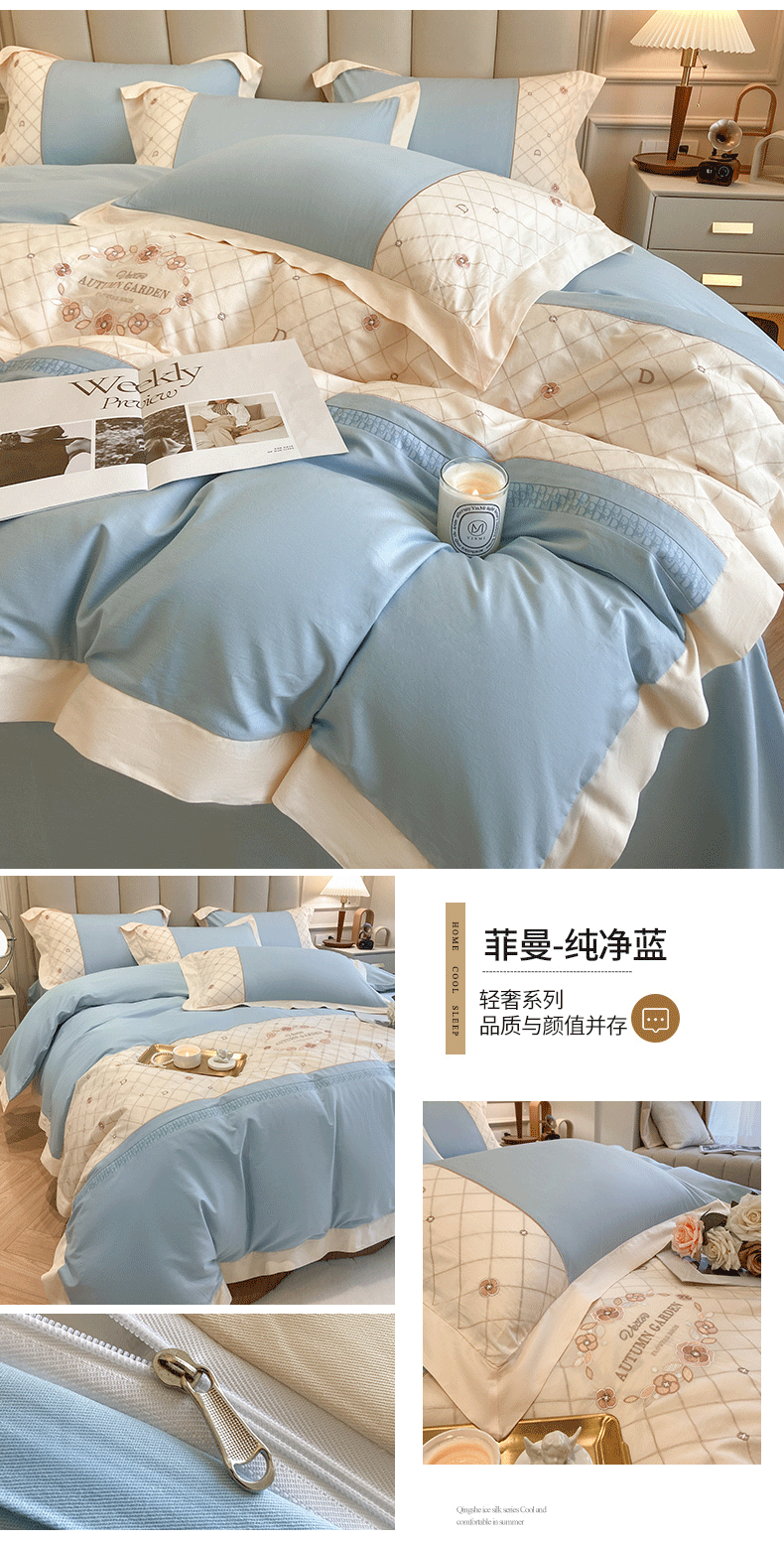 (总)丝印良品 2025秋冬保暖60S全棉刺绣拼接菲曼系列四件套