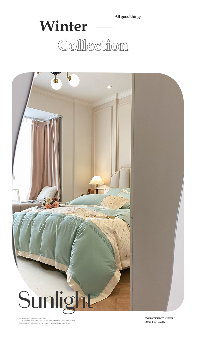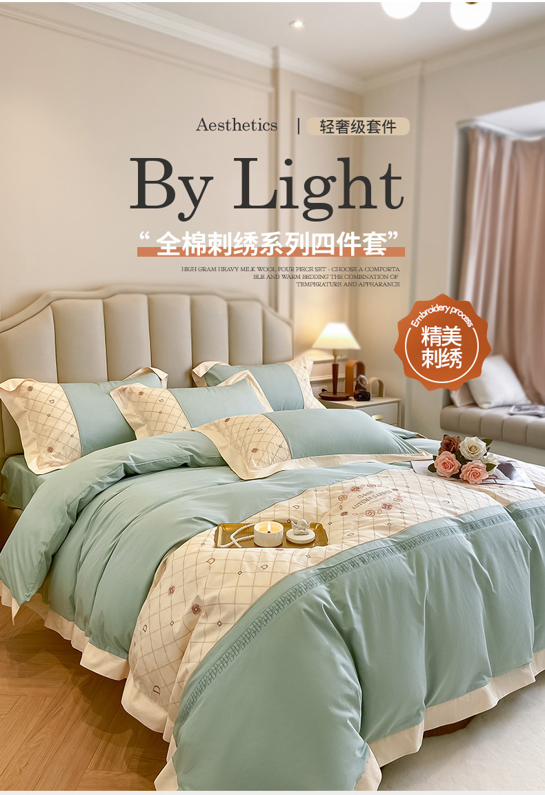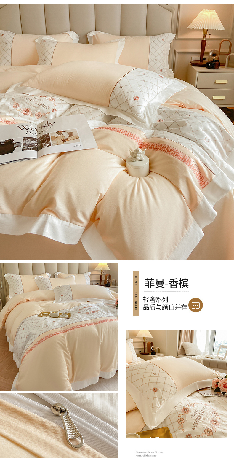 (总)丝印良品 2025秋冬保暖60S全棉刺绣拼接菲曼系列四件套