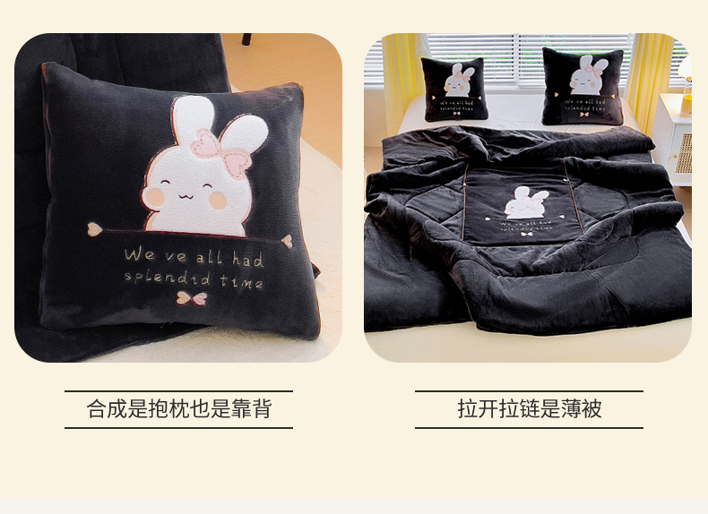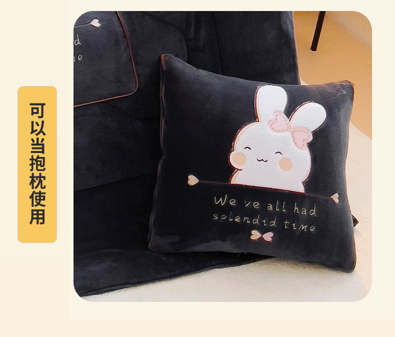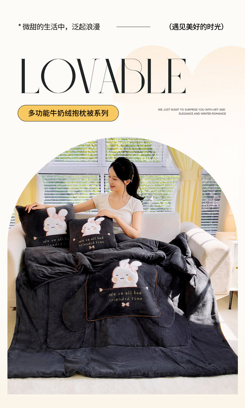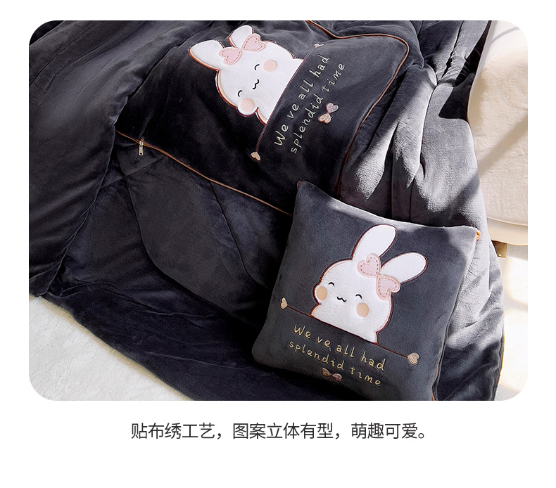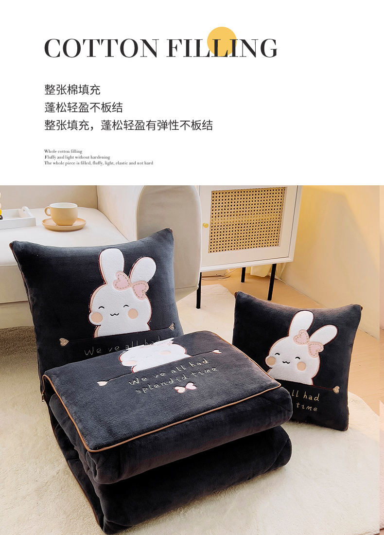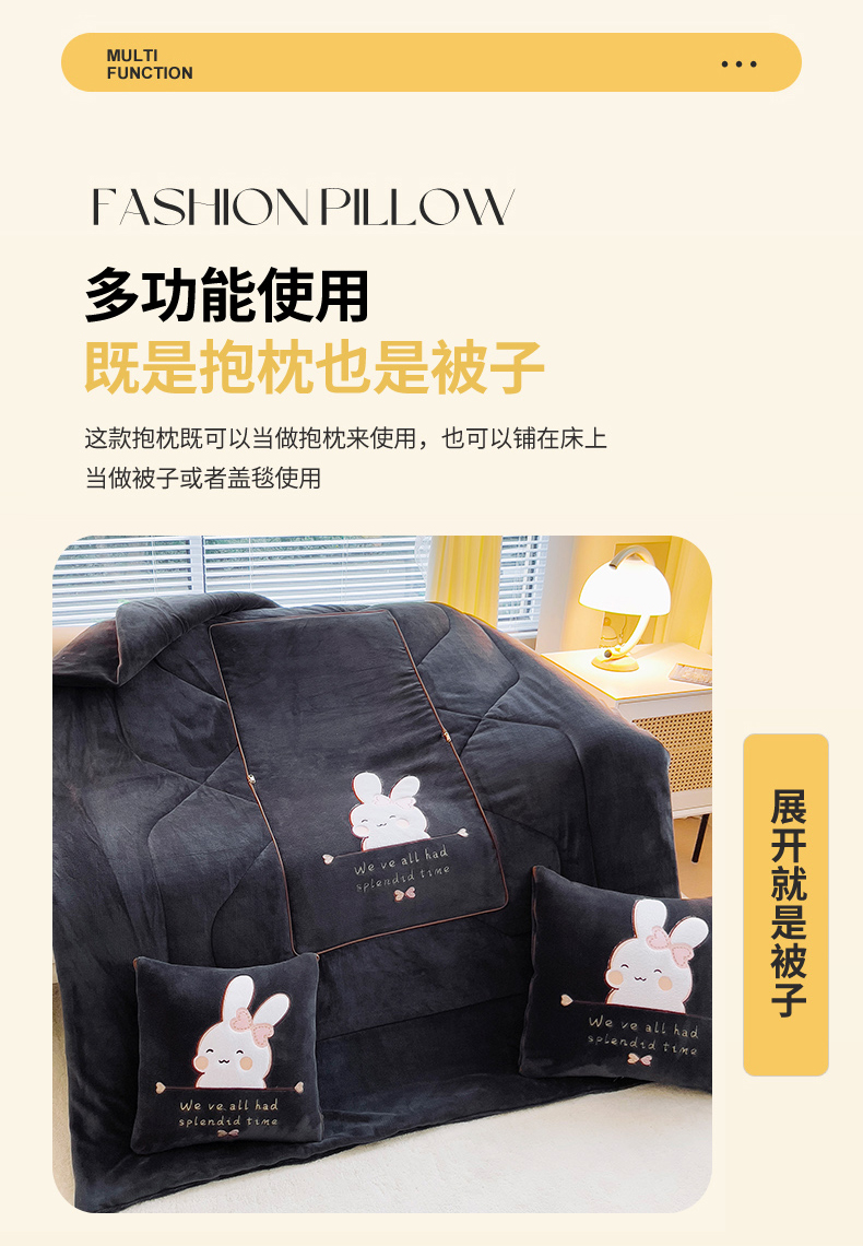 阳光依佰 2023新款多功能牛奶绒抱枕被-暖暖兔 深灰