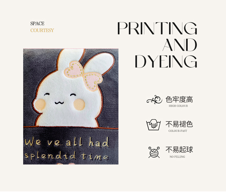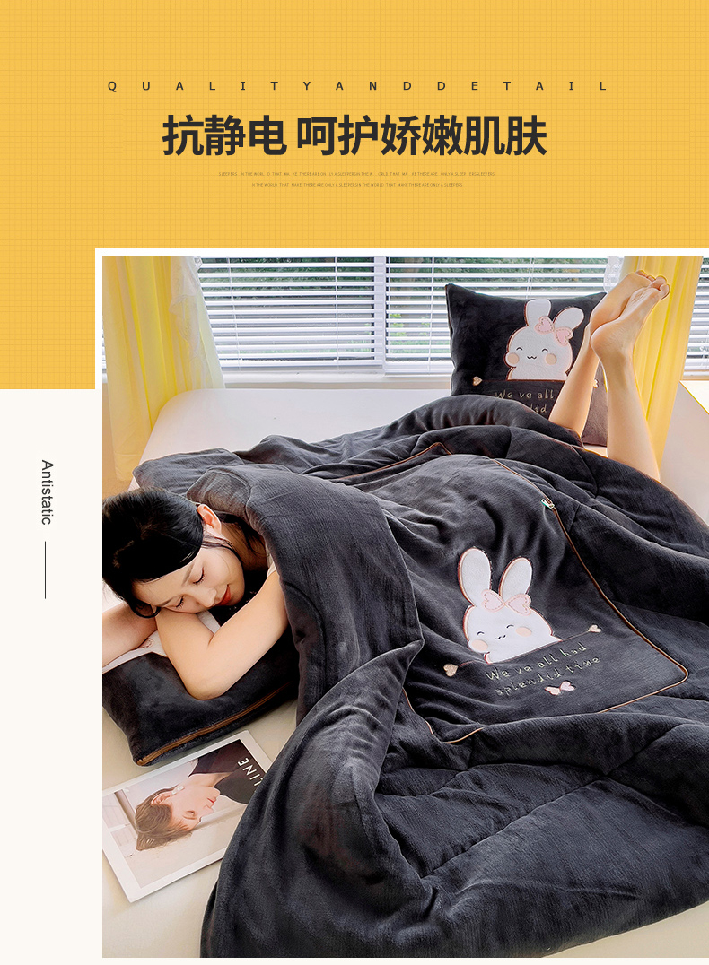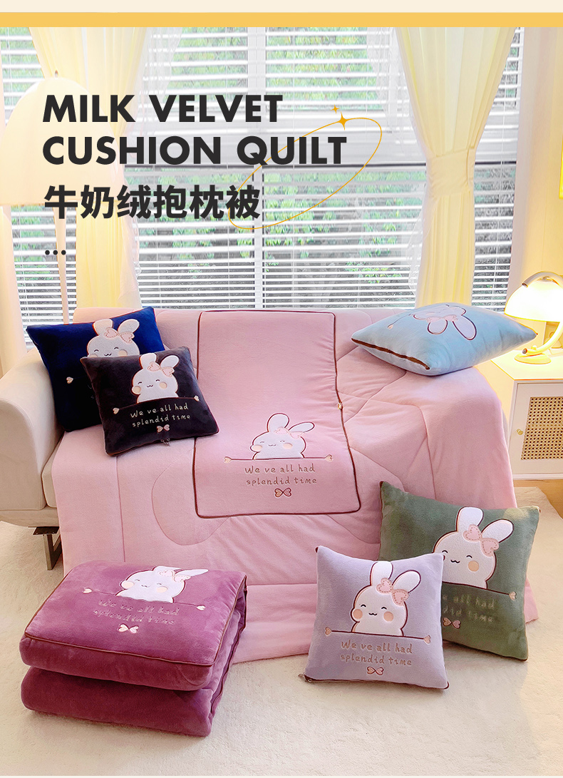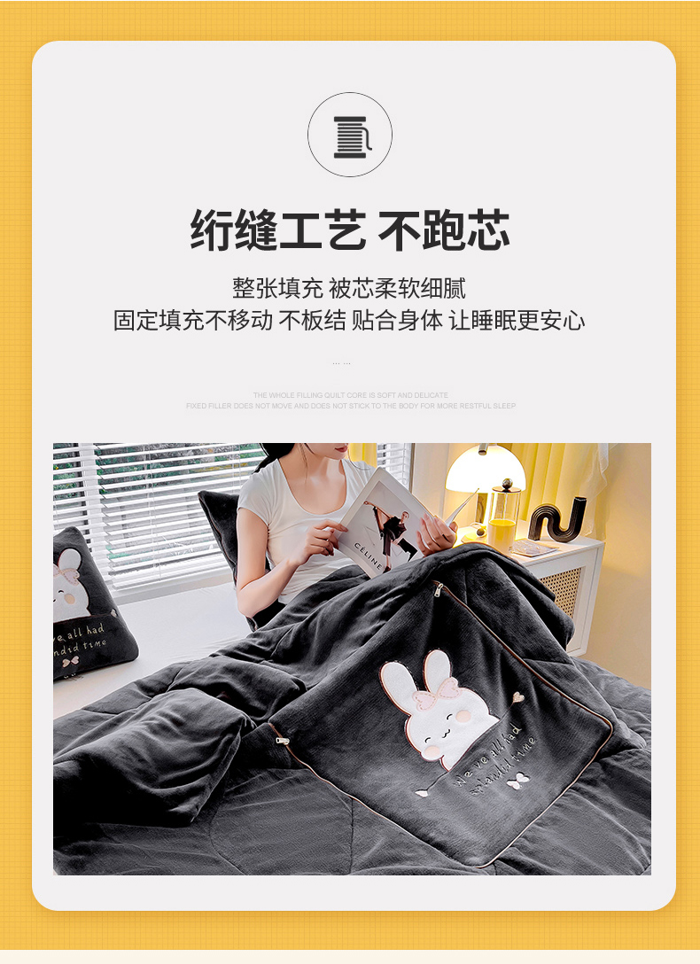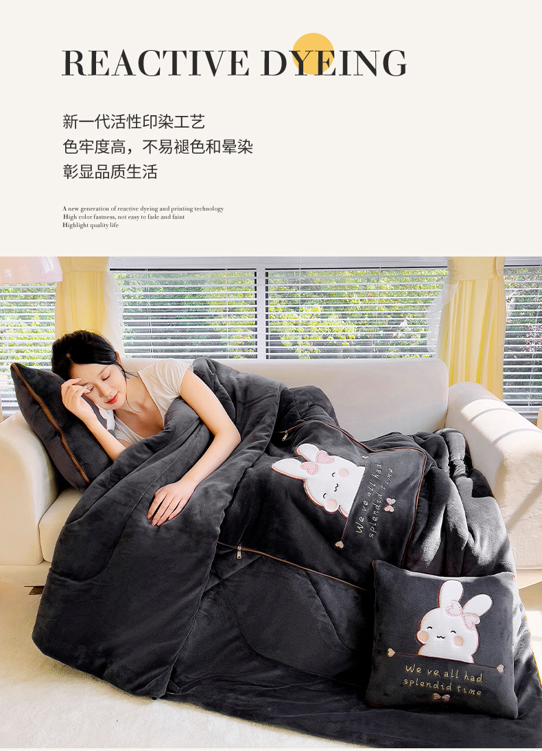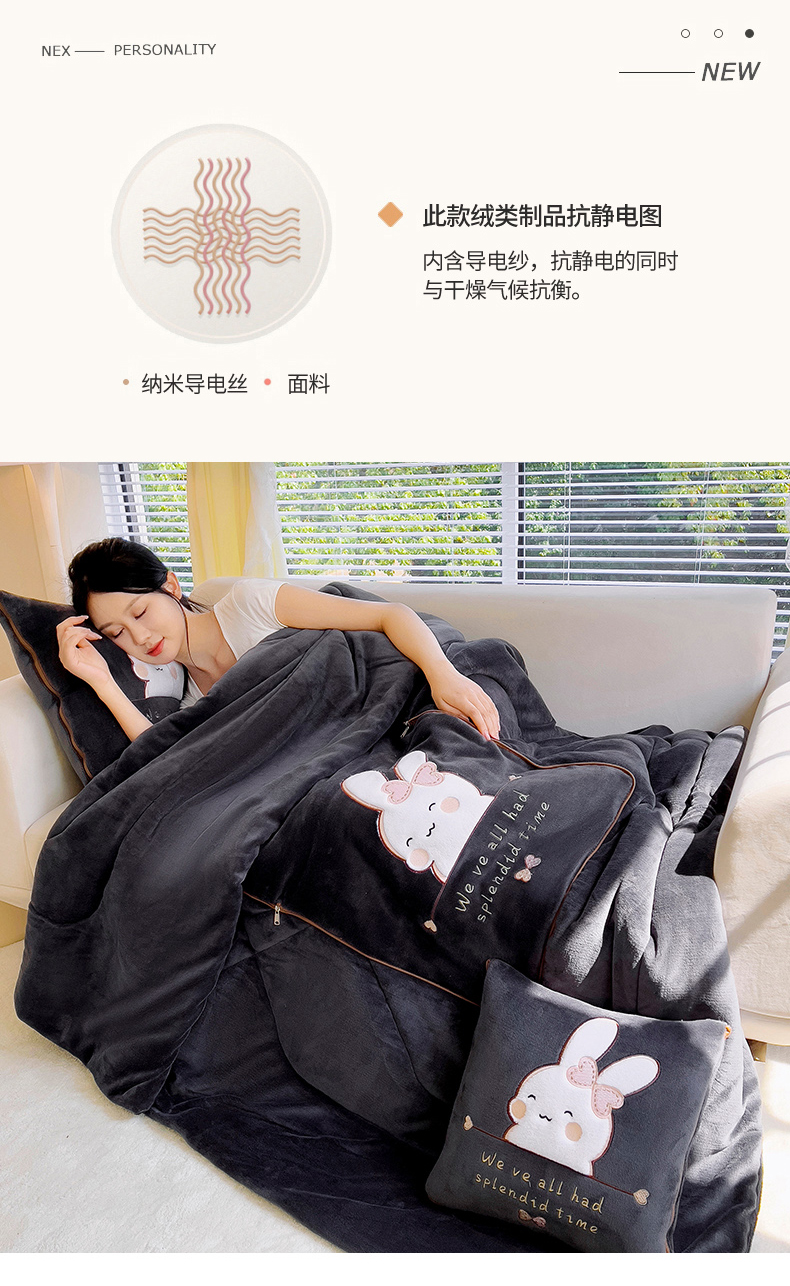 阳光依佰 2023新款多功能牛奶绒抱枕被-暖暖兔 深灰