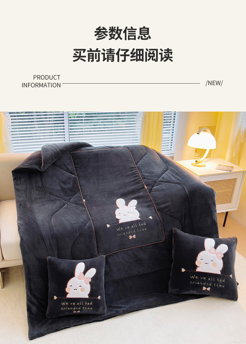 商品名称:阳光依佰 2023新款多功能牛奶绒抱枕被-暖暖兔 深灰