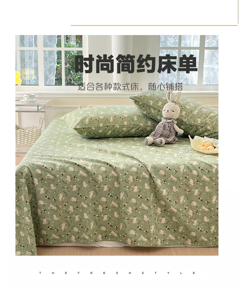 麦伦 2023新款全棉单品A版单床单床笠-单床单 单品床单-香香兔绿
