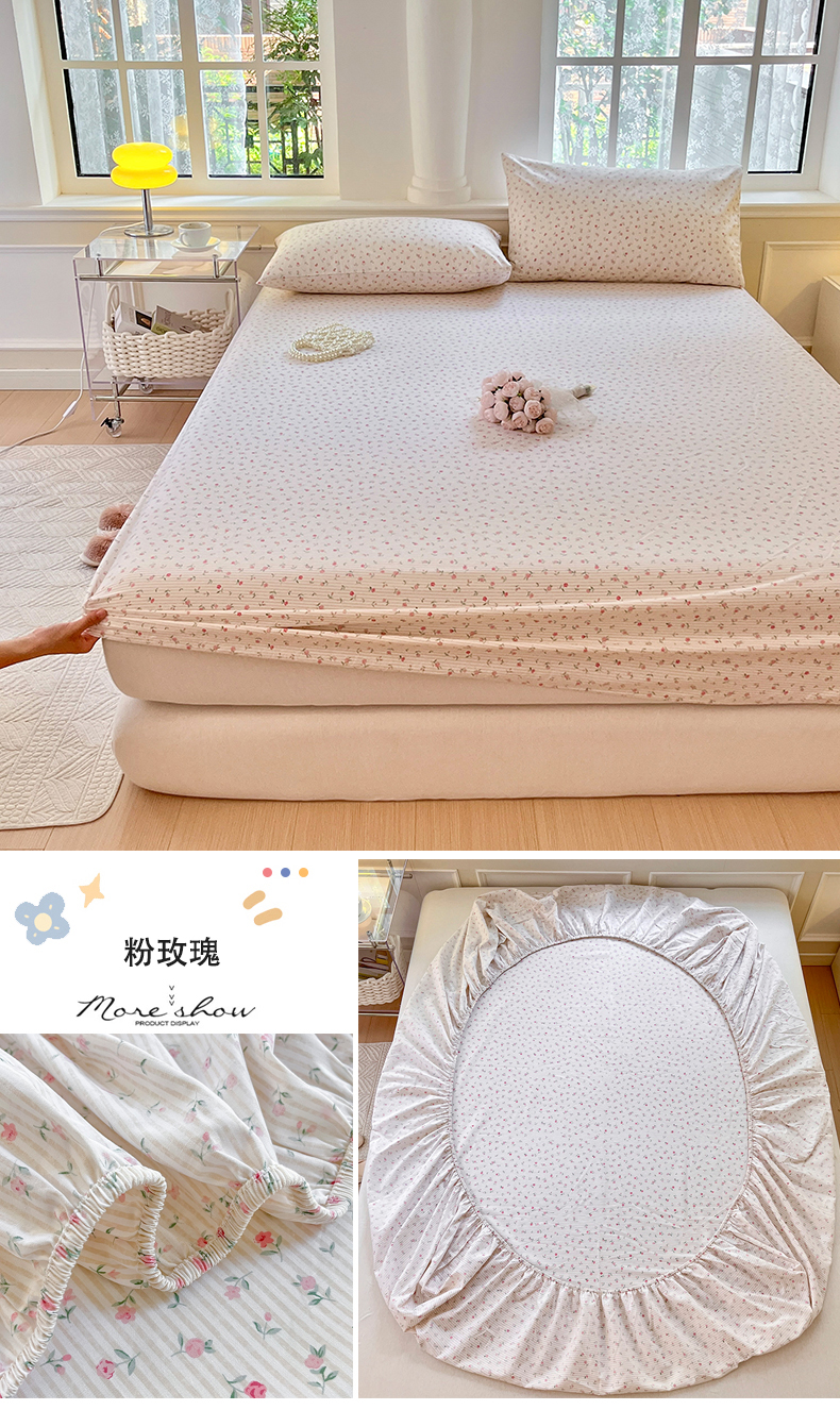 麦伦 2023新款全棉单品A版单床单床笠-单床笠 单品床笠-粉玫瑰
