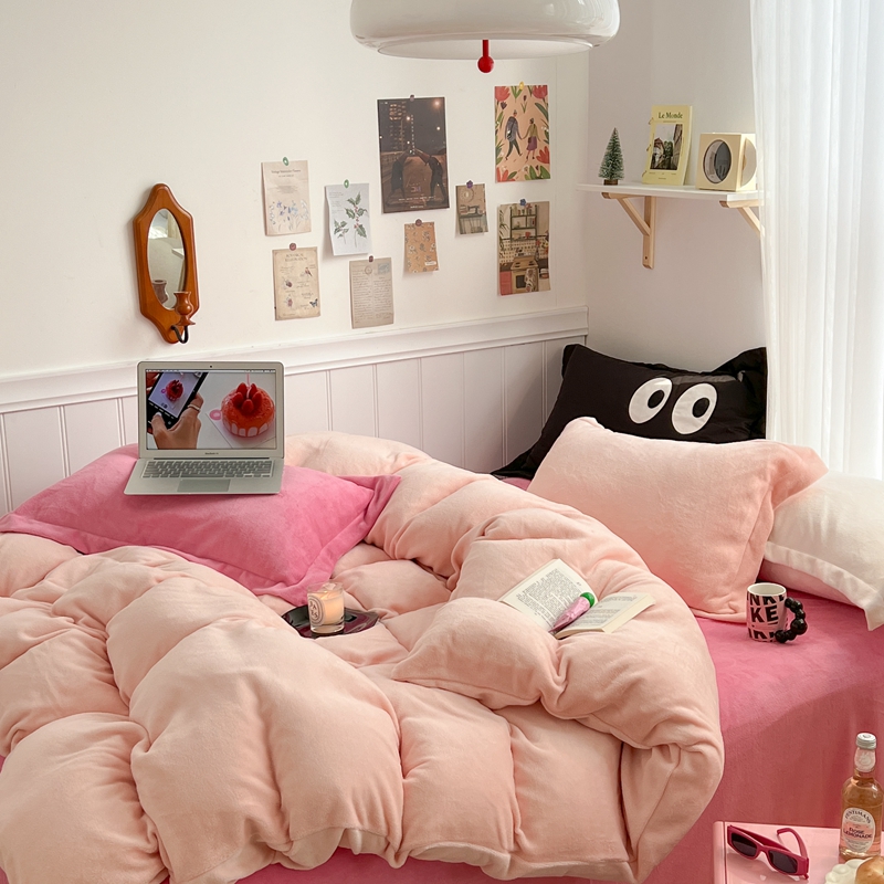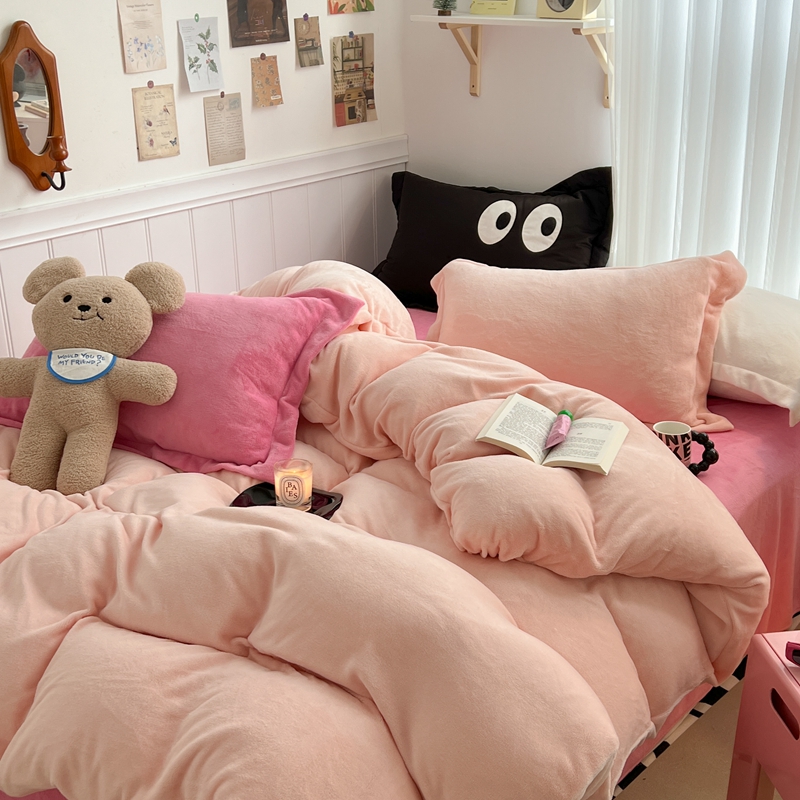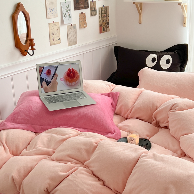 当前位置: 91家纺网 > 商品网购 > 床品套件 > 四件套 > 牛奶绒四件套 > 顾里家纺 2023新款多巴胺撞色混搭牛奶绒四件套 荔枝气泡