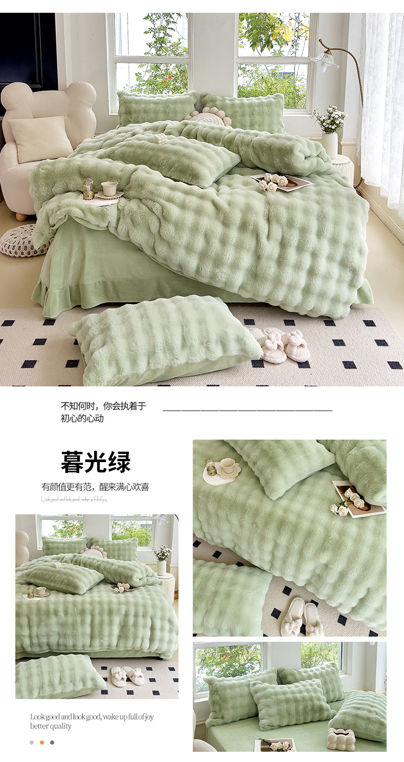 当前位置: 91家纺网 > 商品网购 > 床品套件 > 四件套 > 牛奶绒四件套 > 24新款380克托卡斯仿皮草大泡泡8-9斤牛奶绒兔毛绒兔兔绒四件套 暮光绿