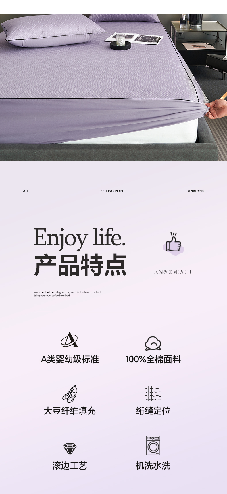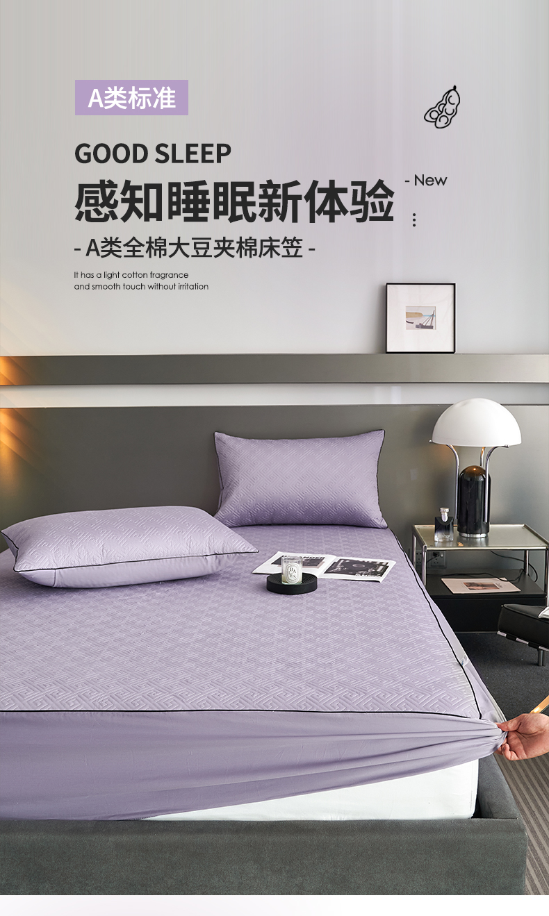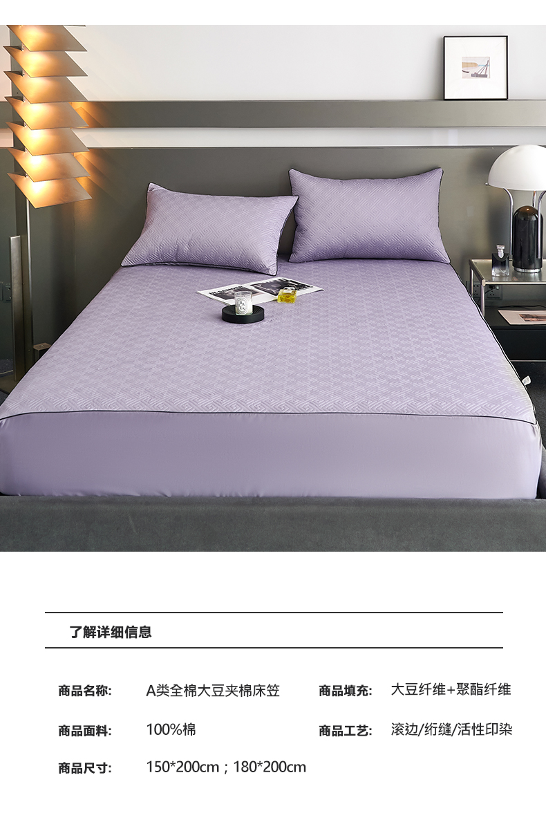 商品名称:八十八家纺2023新款大豆纤维夹棉床笠 烟灰紫