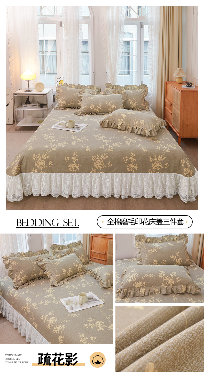 宜凡家纺 2023新款全棉加厚磨毛印花床盖三件套 疏花影