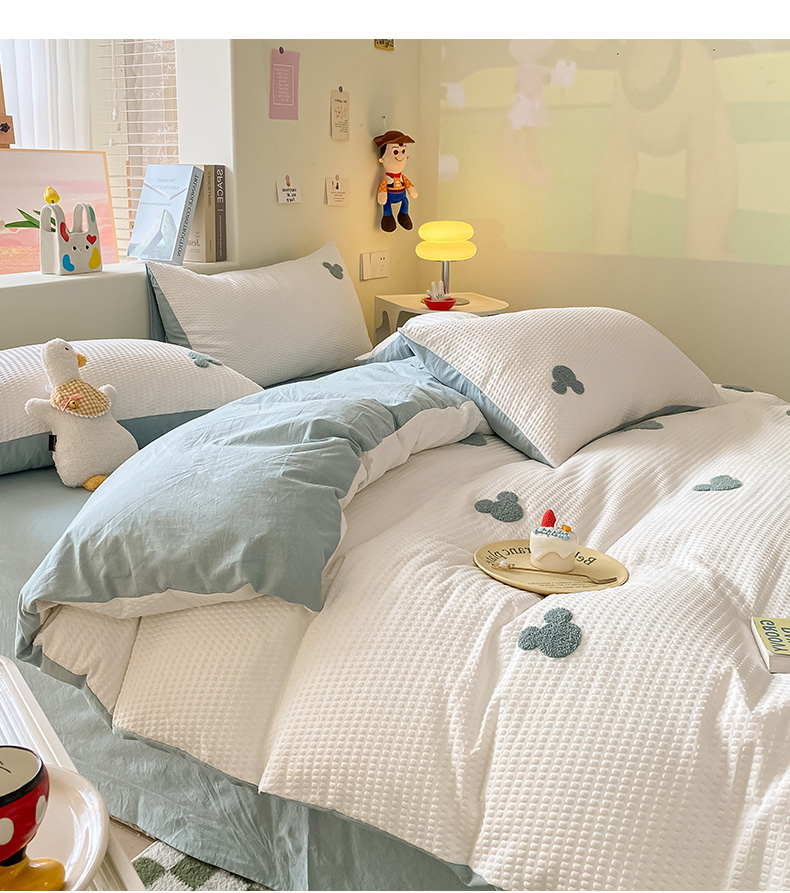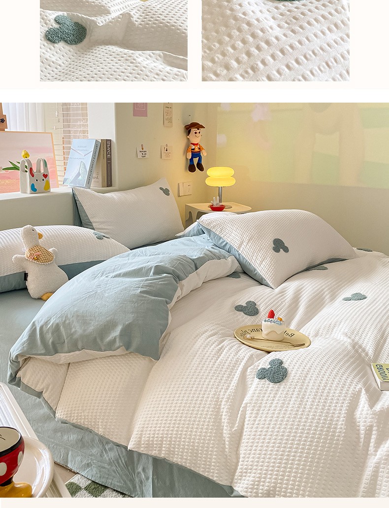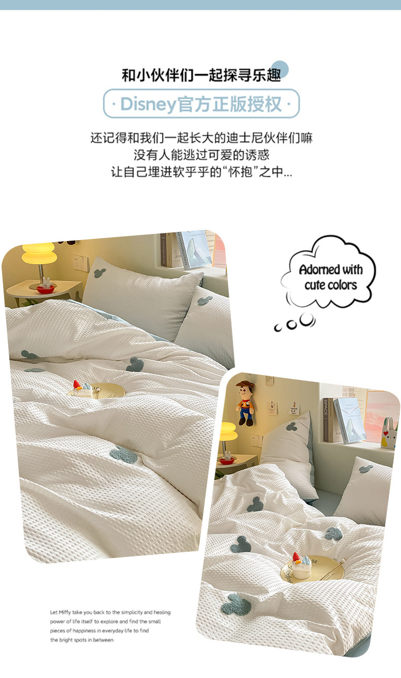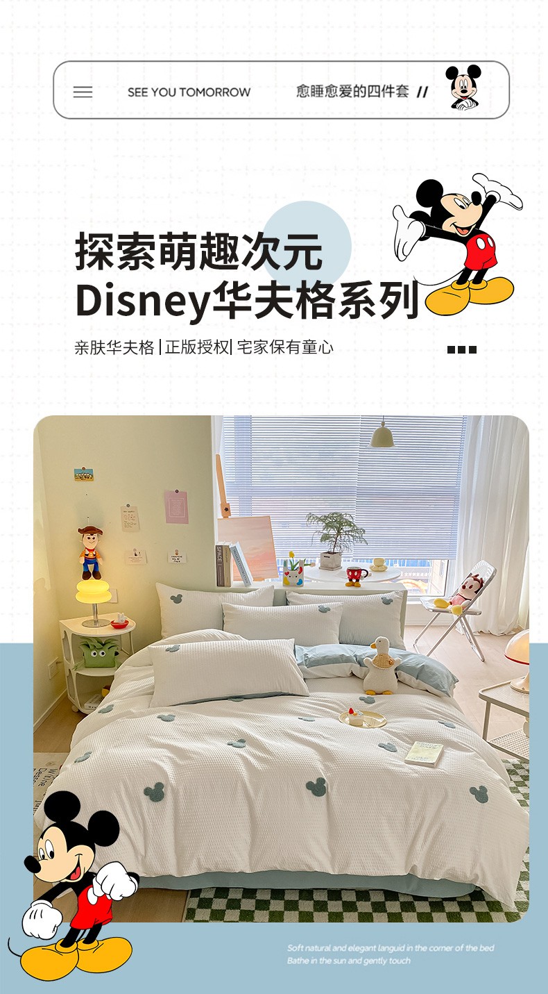 当前位置: 91家纺网 > 商品网购 > 床品套件 > 四件套 > 水洗棉四件套 > 眠帛家居 2024新款华夫格迪士尼米奇毛巾绣系列 米奇繁星蓝