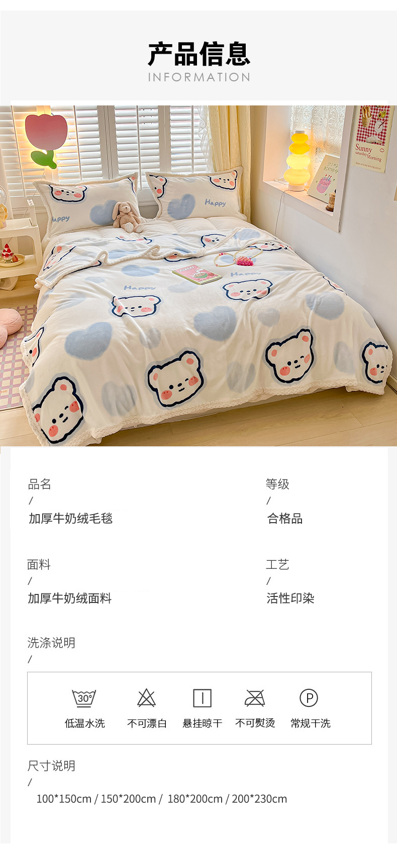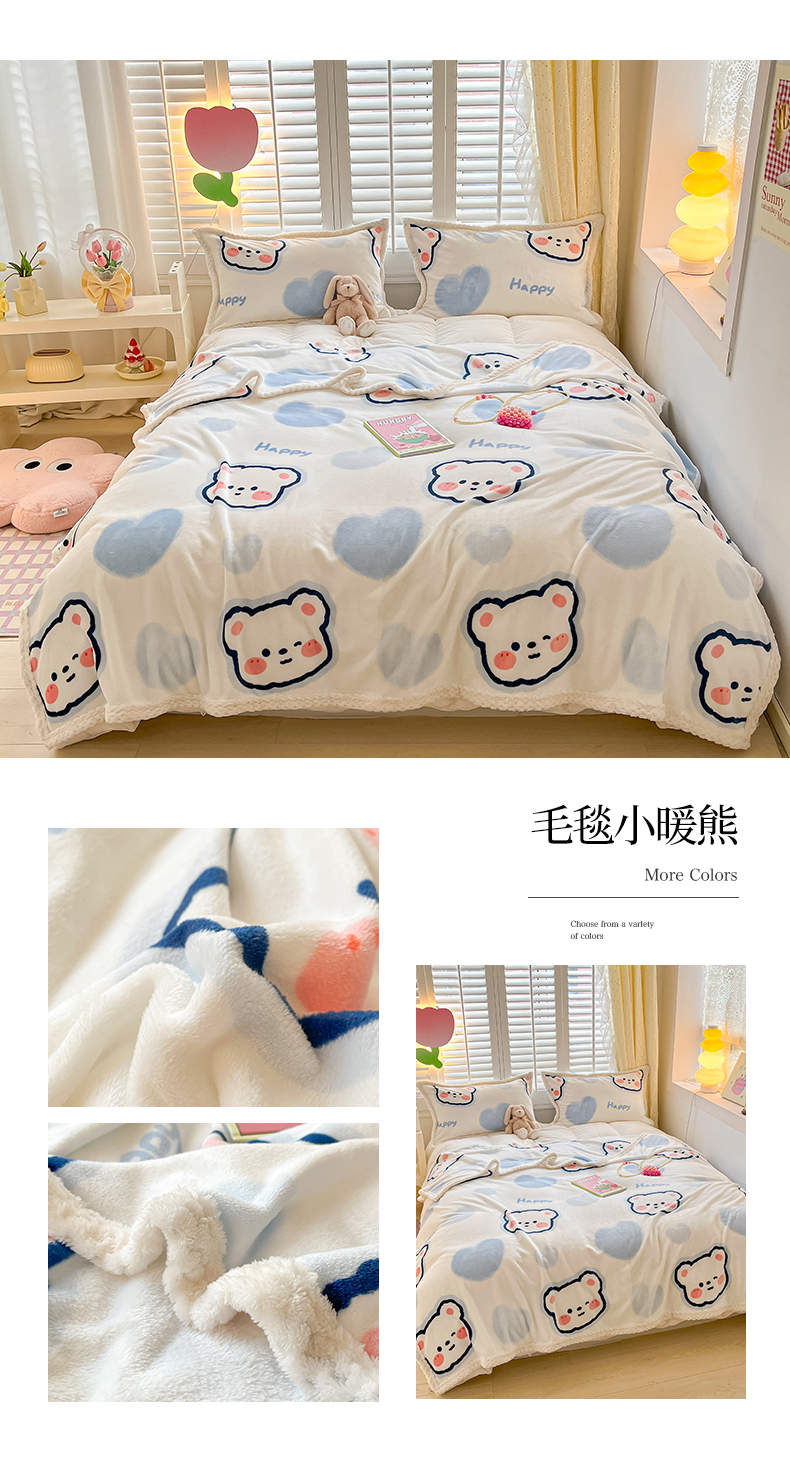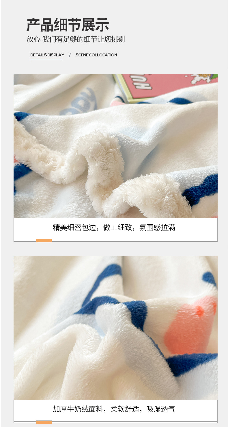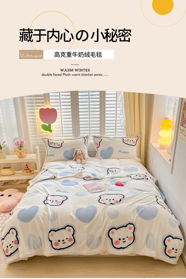 商品名称:川悦生活 2023新款双面240克宽边牛奶绒毯子 毛毯小暖熊