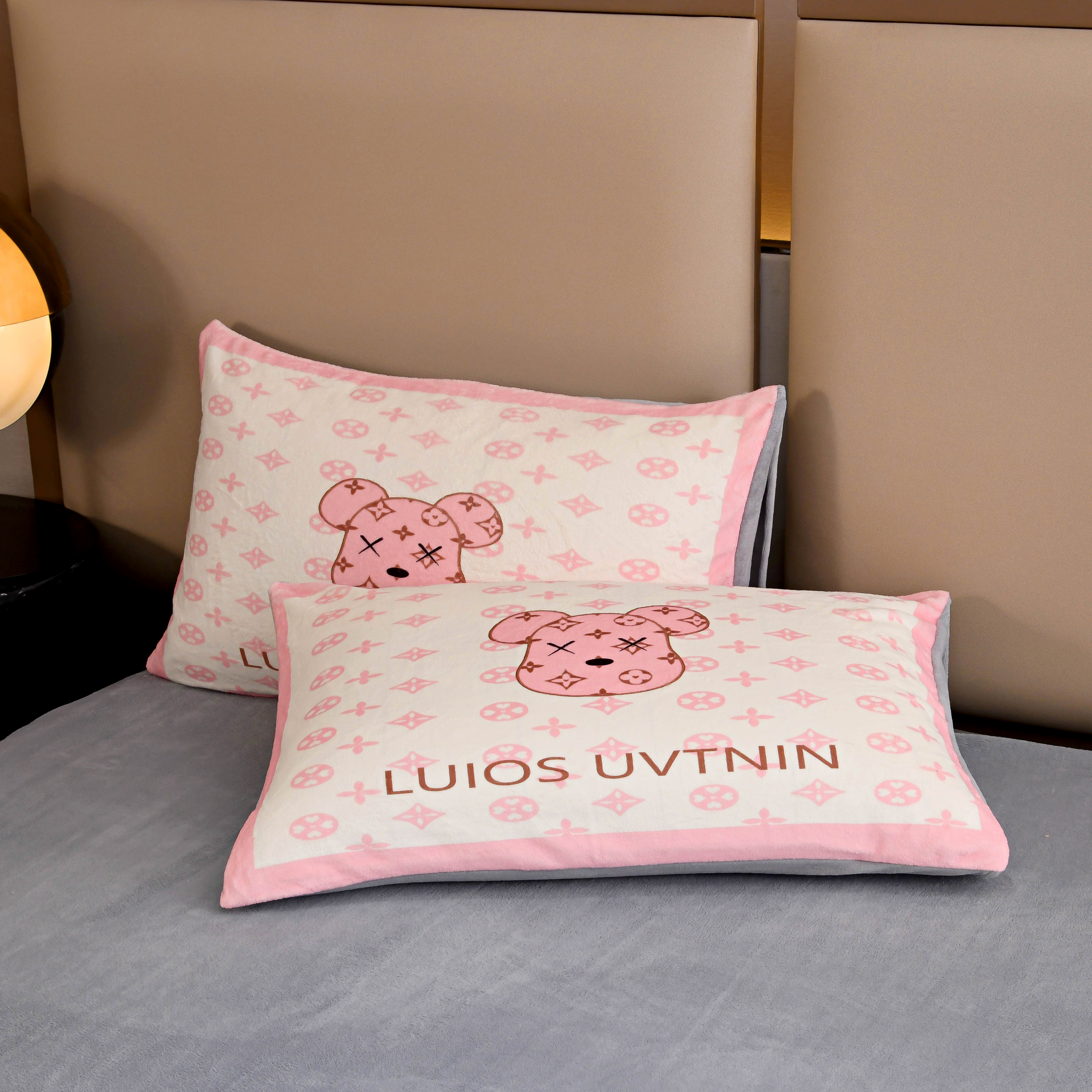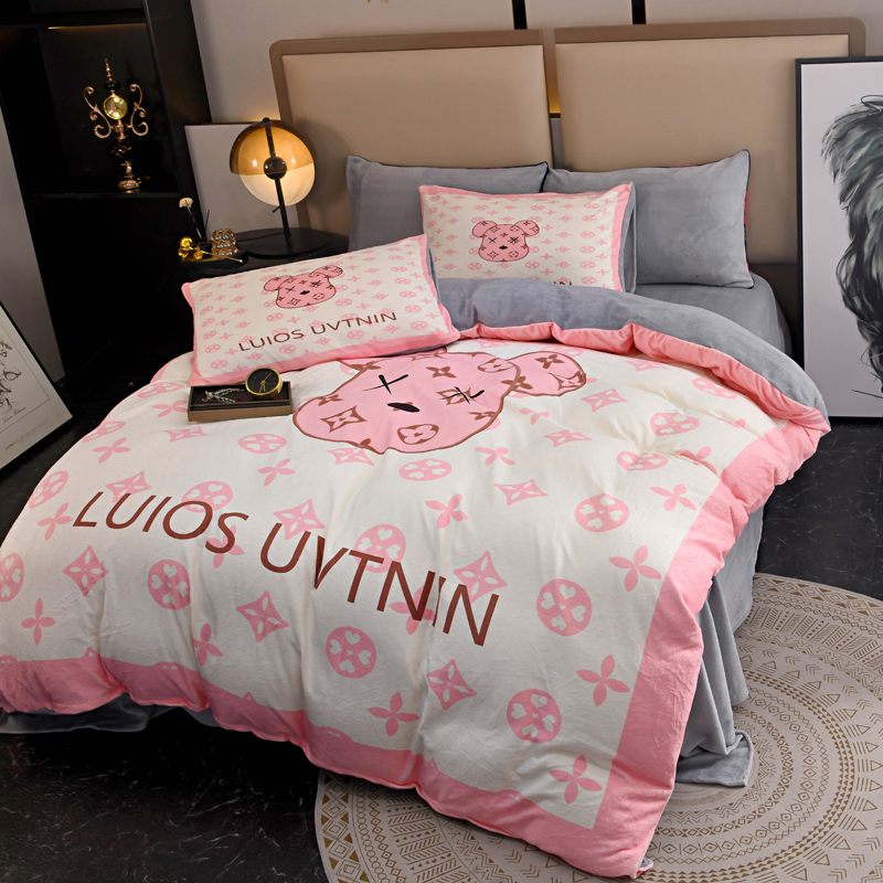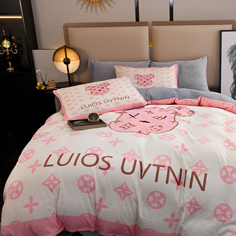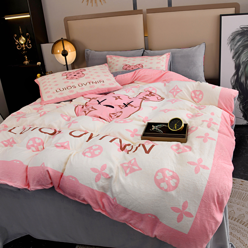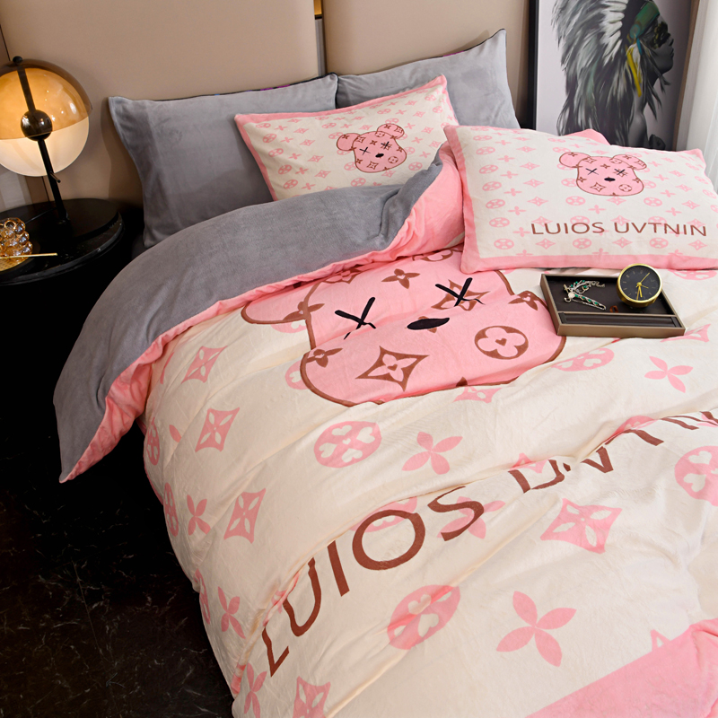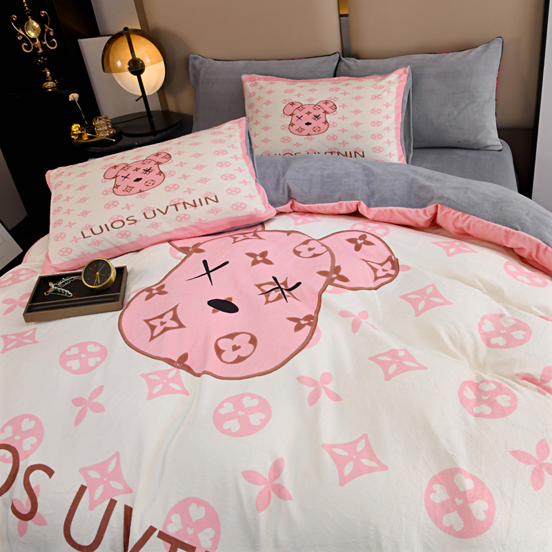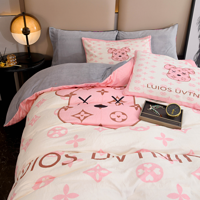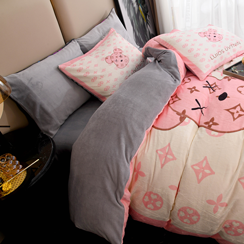 爵仕家纺 2023新款暴力熊牛奶绒系列四件套 暖暖粉