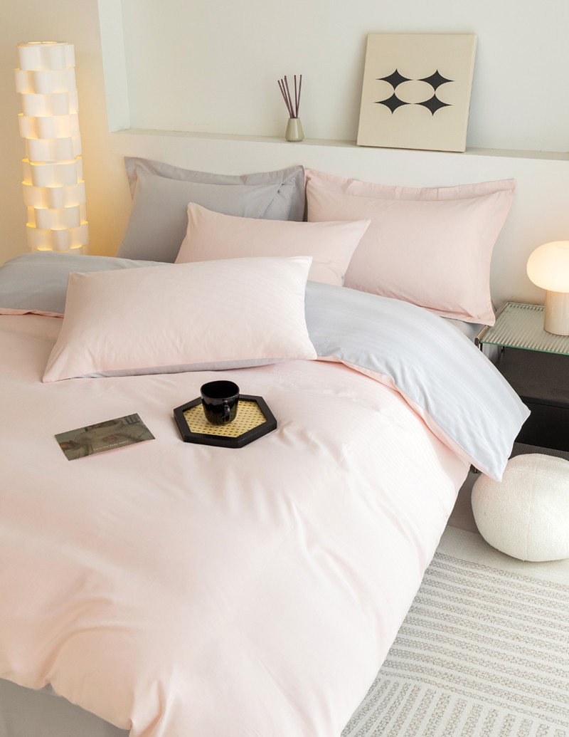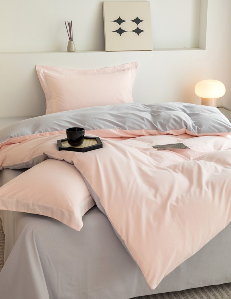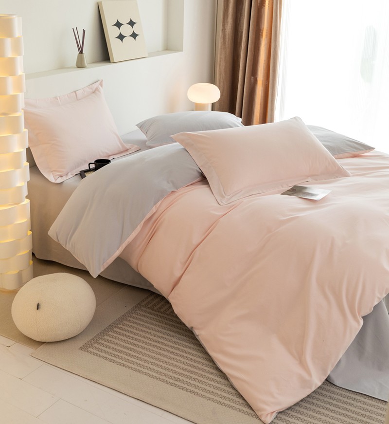 寐居家纺 2023新款A类全棉磨毛纯色四件套 清新淡雅