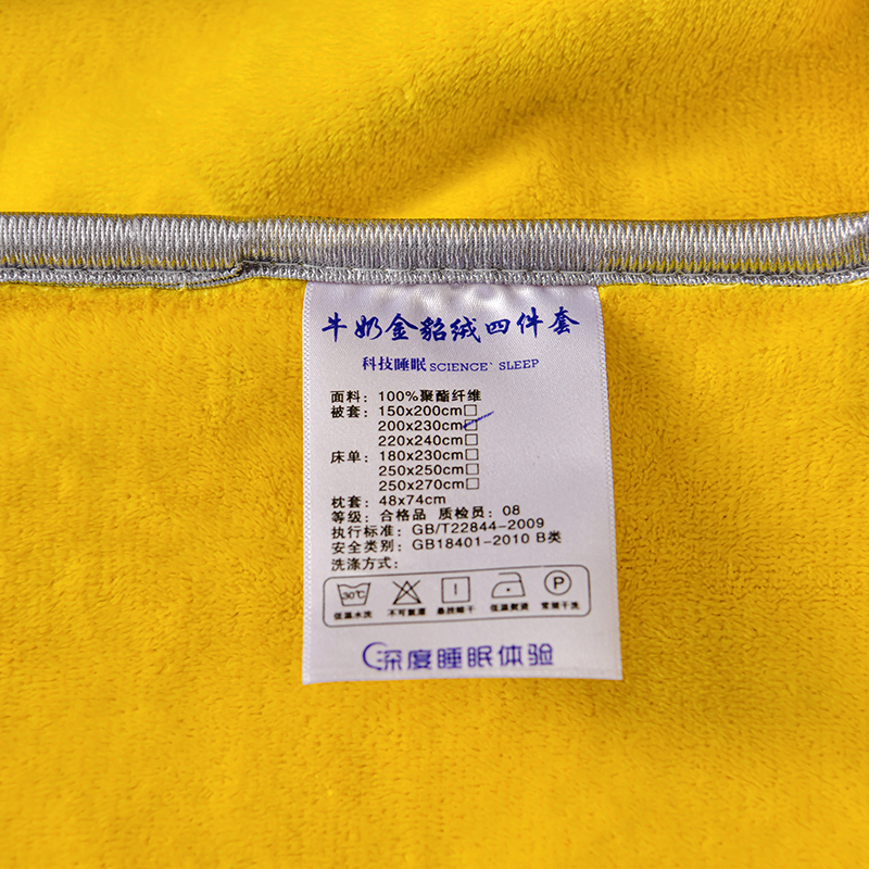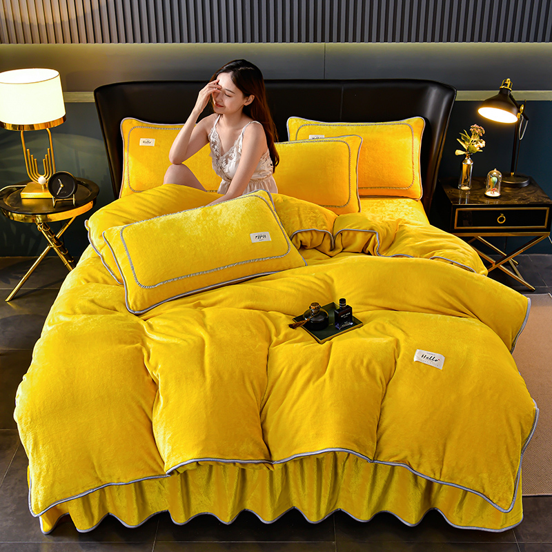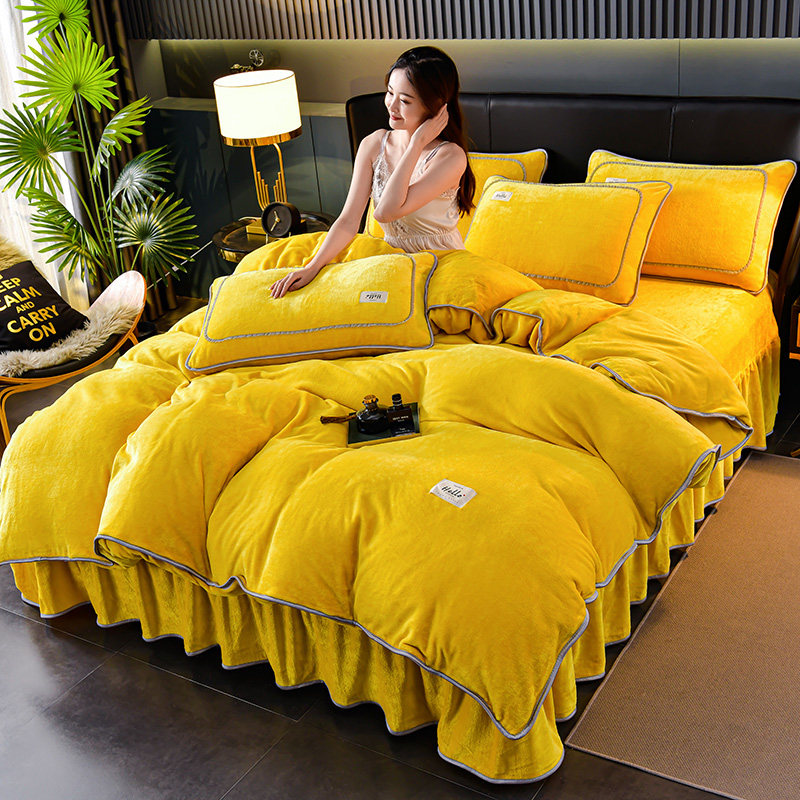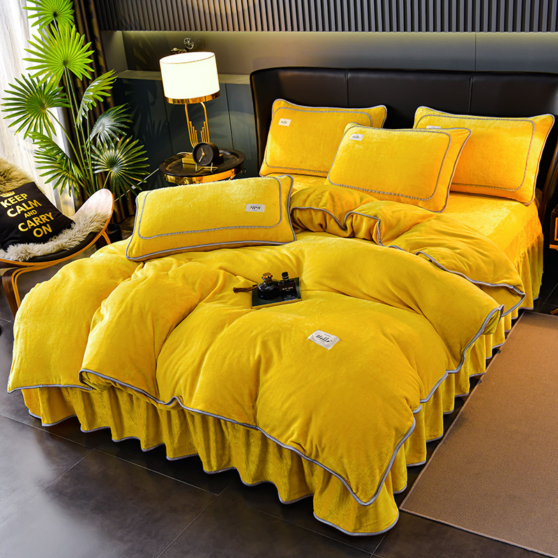 商品名称:畅畅家纺 2023新款纯色8.5斤9斤牛奶绒法莱绒宝宝金貂绒四件套 黄色