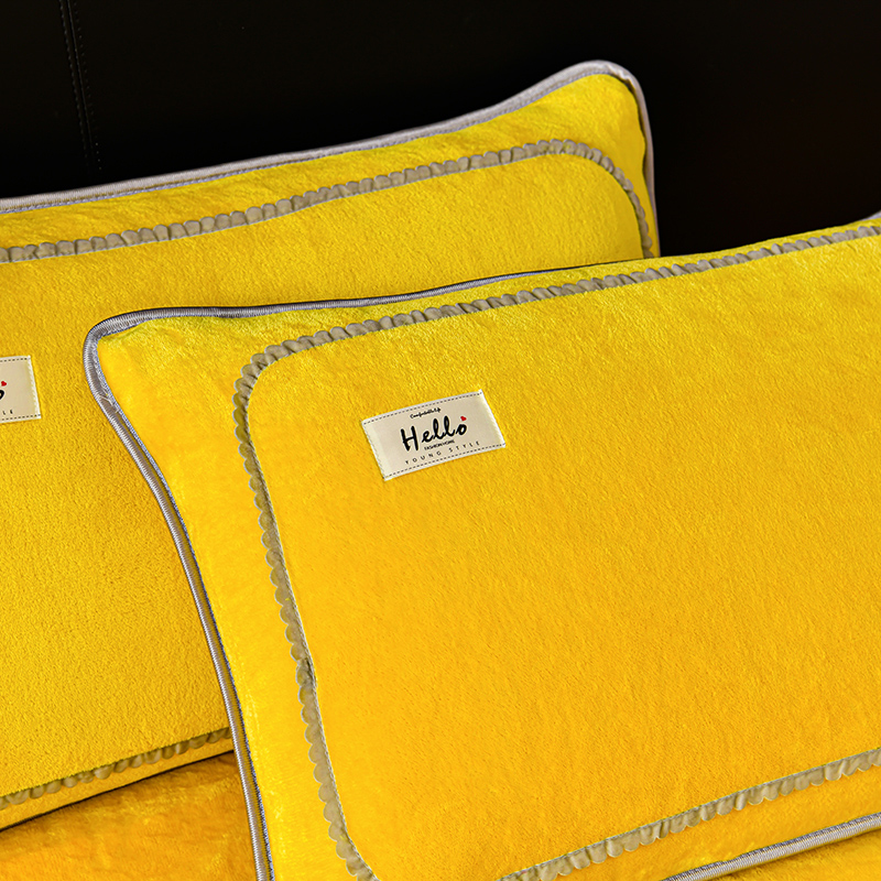 畅畅家纺 2023新款纯色8.5斤9斤牛奶绒法莱绒宝宝金貂绒四件套 黄色