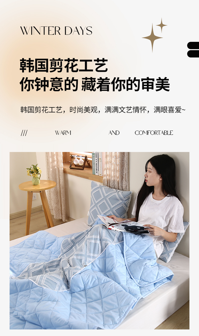 (总)金纳抱枕被 2023新款韩式剪花抱枕被,豆沙,浅卡其,烟花粉,珍珠灰,主图牛仔蓝