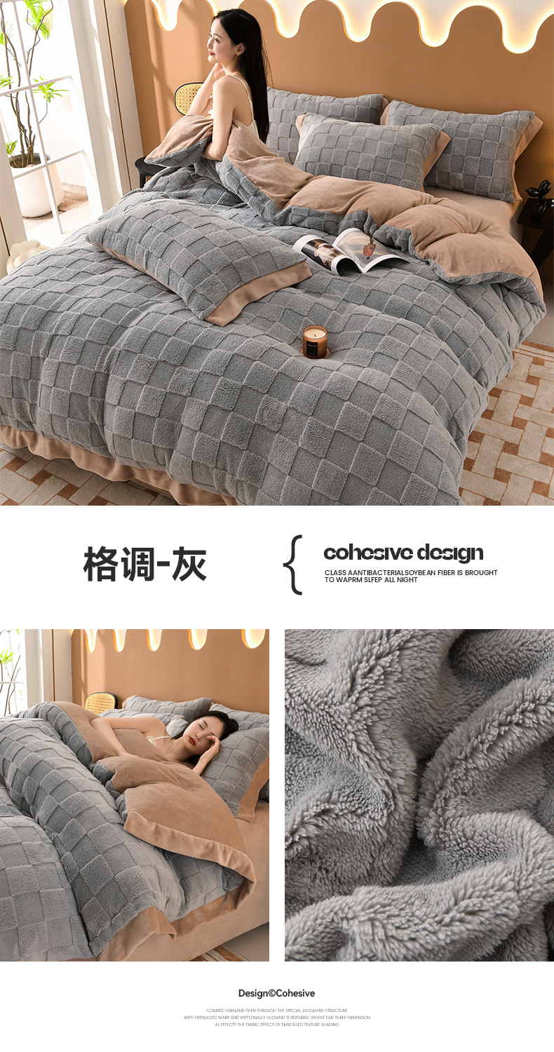 商品名称:澳梵家居 2023新款轻奢款宽边塔芙绒四件套 格调-灰