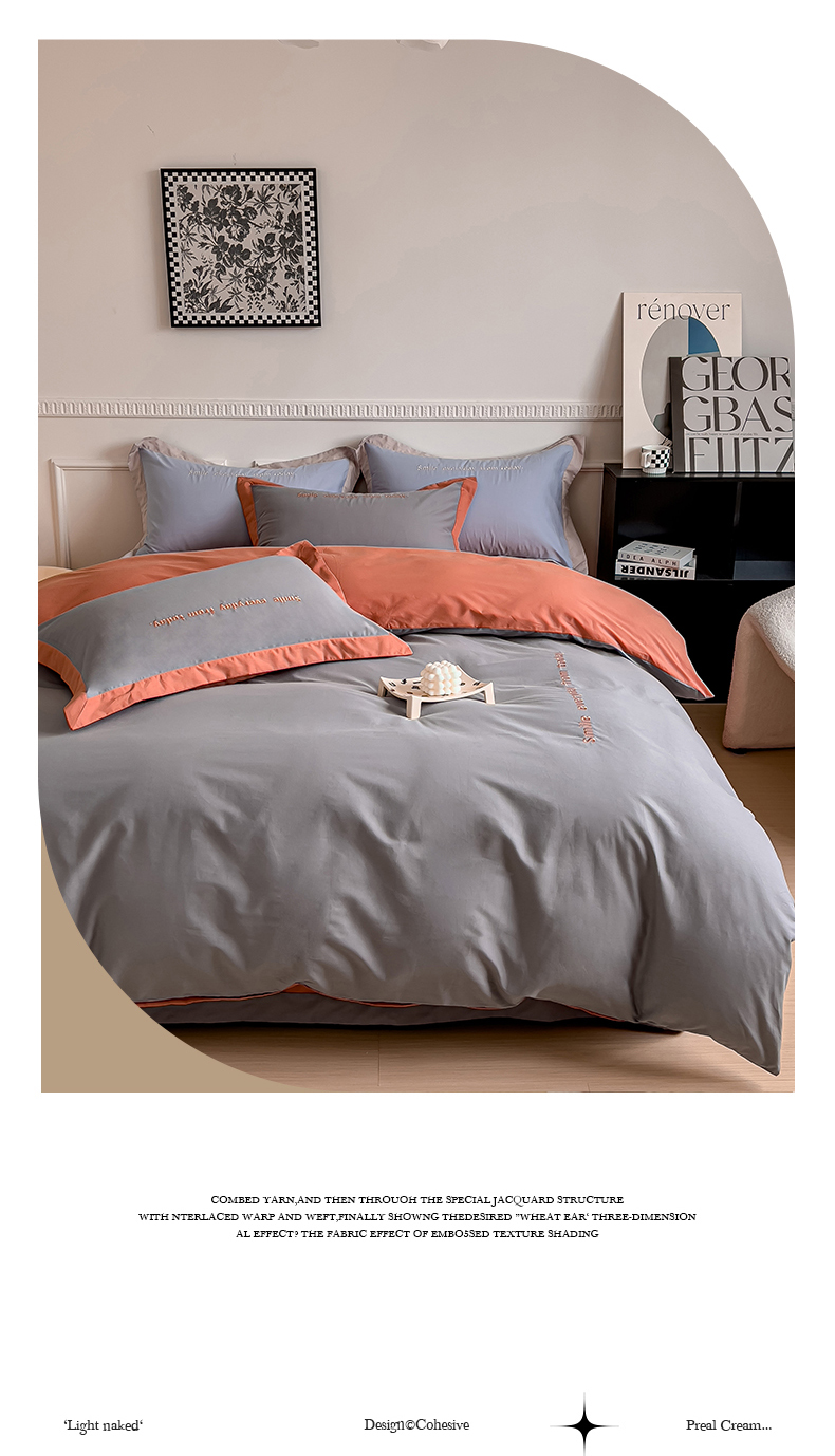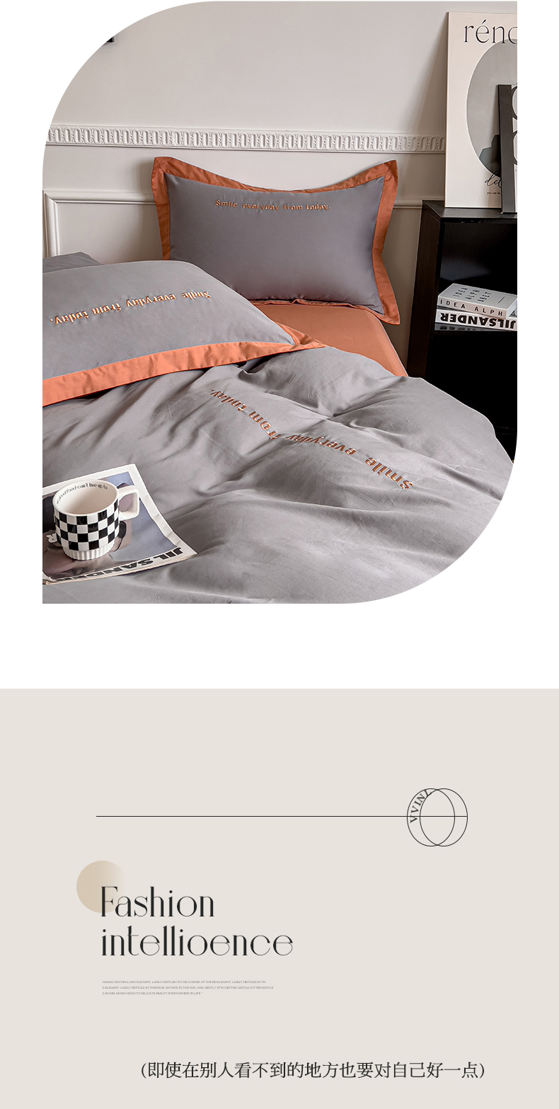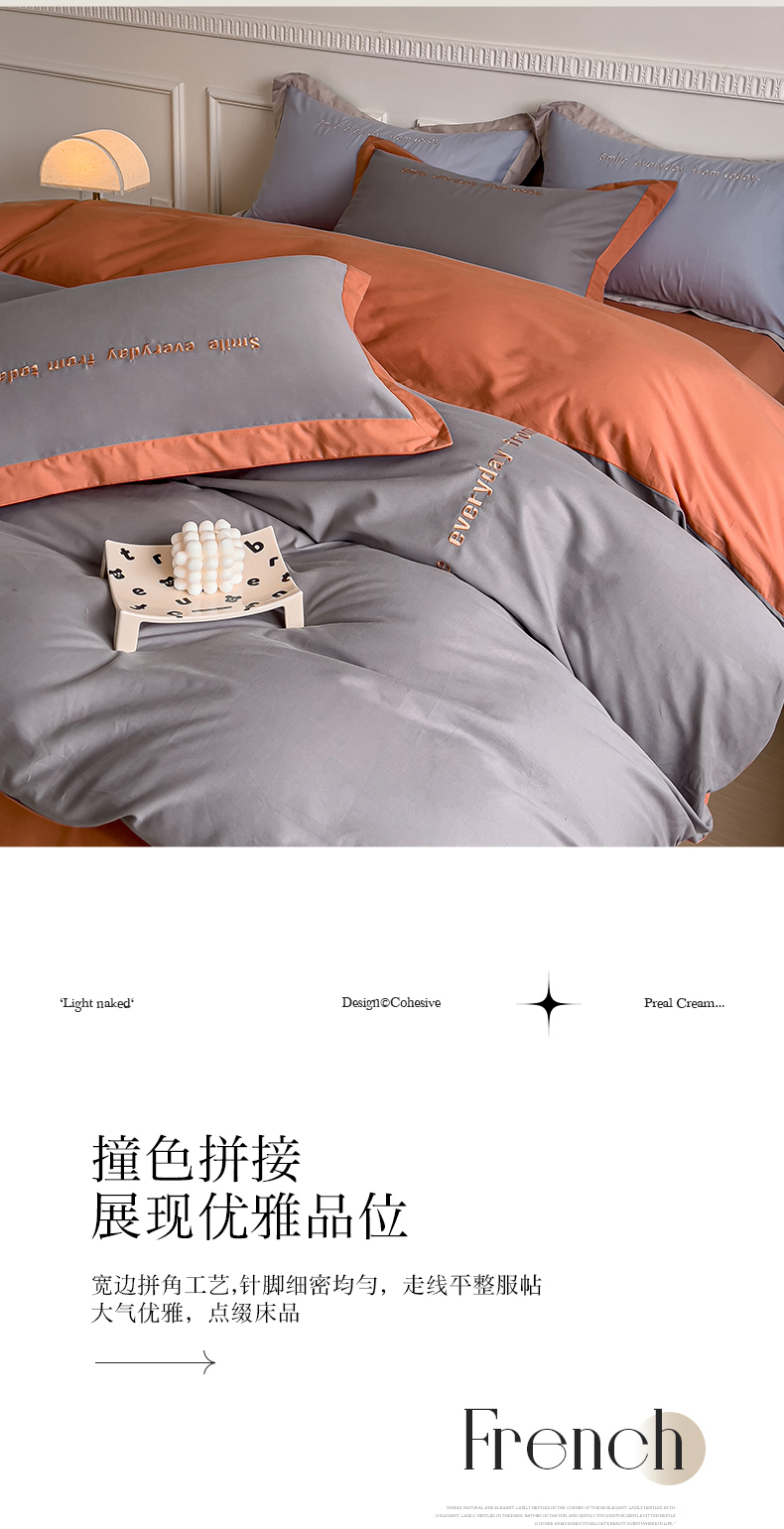 (总)嘉汀兰 2023新款60支全棉磨毛绣花撞色轻奢四件套—暮里,粉色,红灰色,芥绿色,浅灰色,深青色