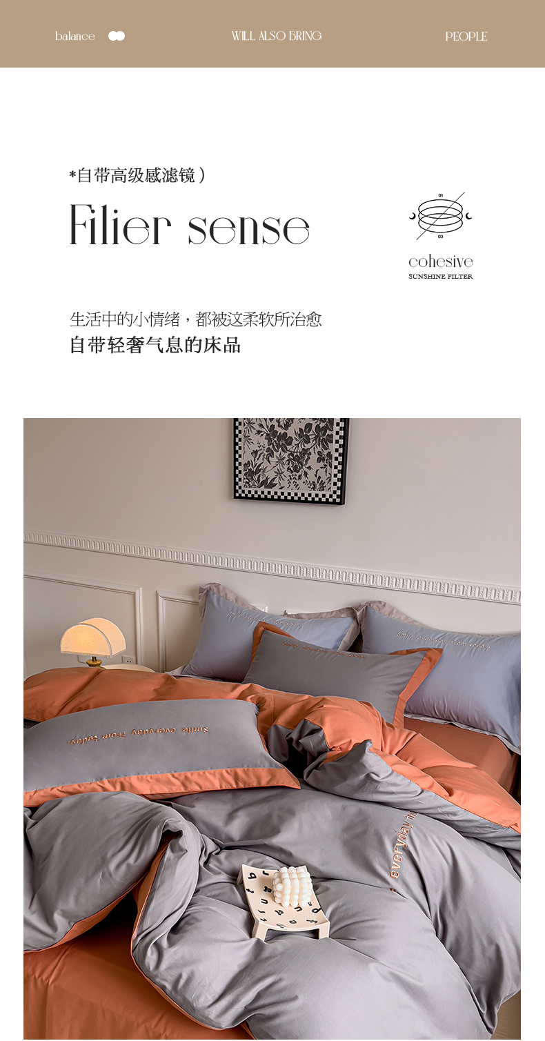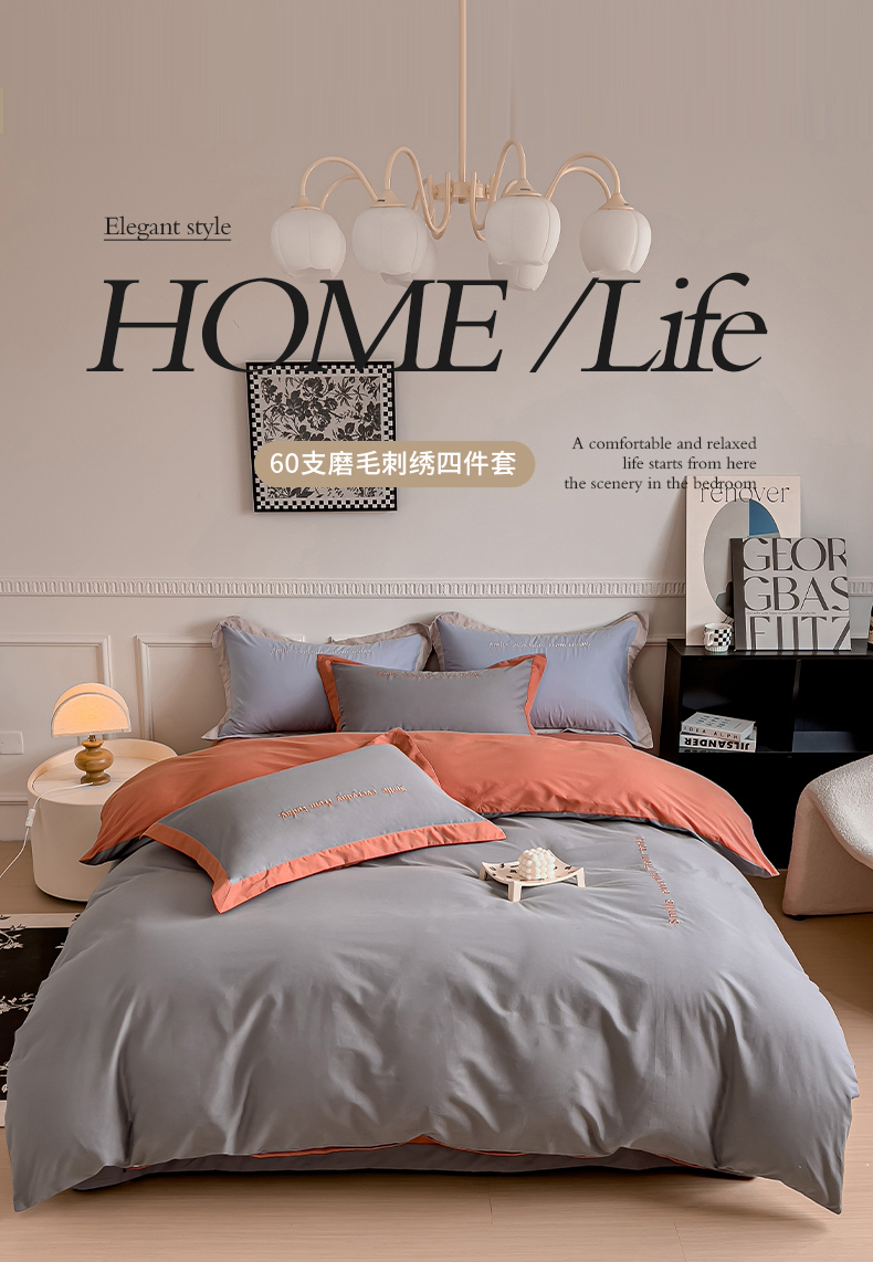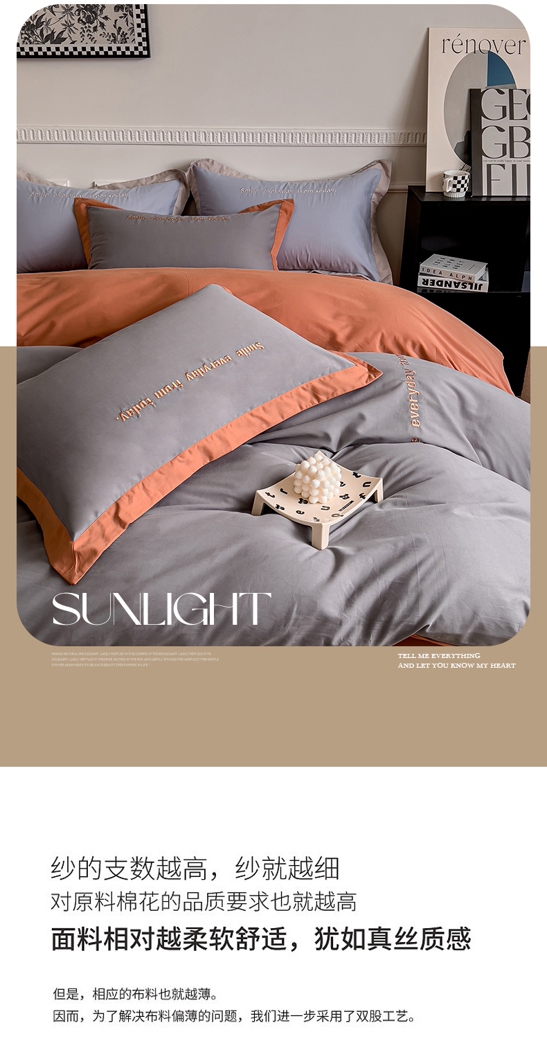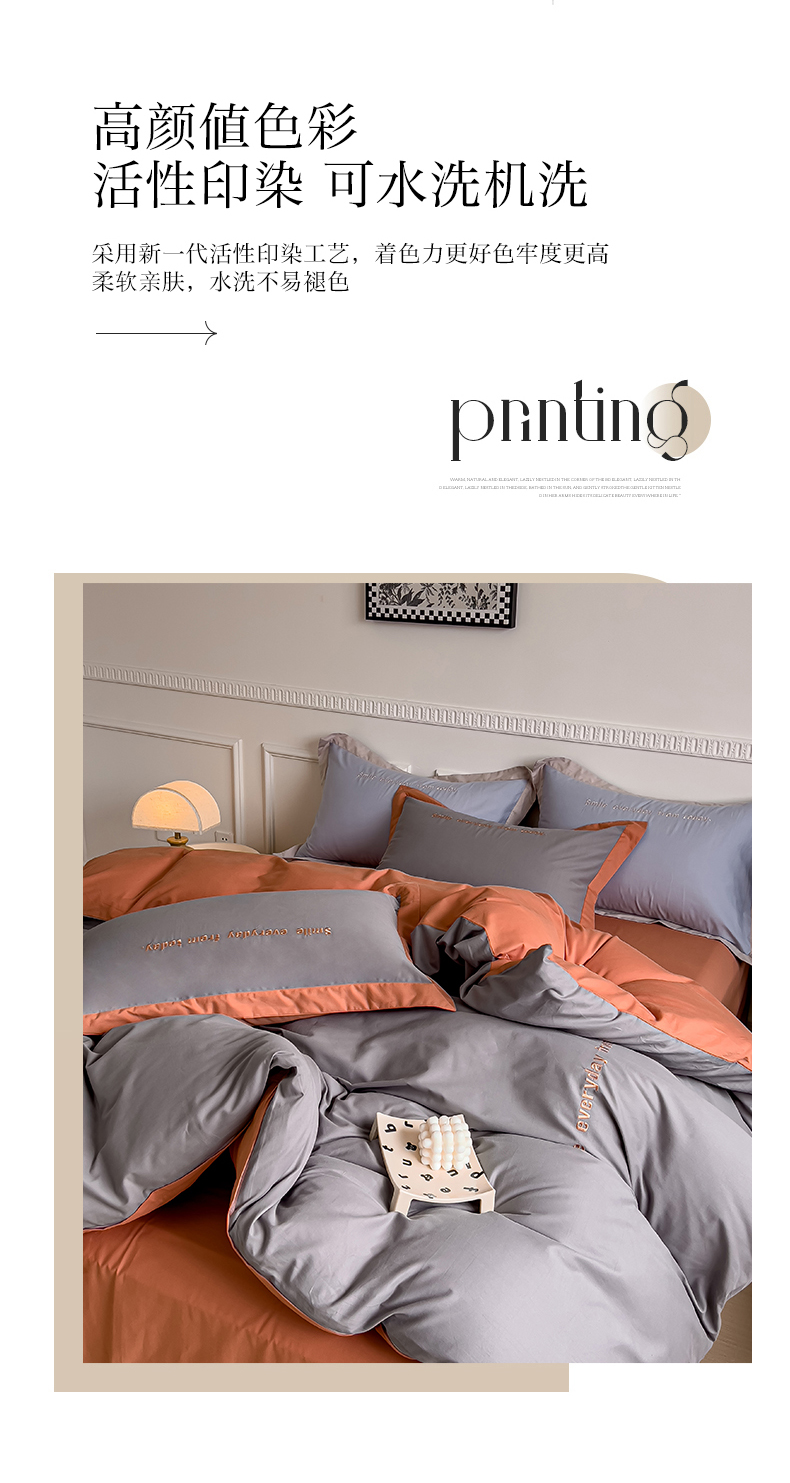 (总)嘉汀兰 2023新款60支全棉磨毛绣花撞色轻奢四件套—暮里,粉色,红灰色,芥绿色,浅灰色,深青色