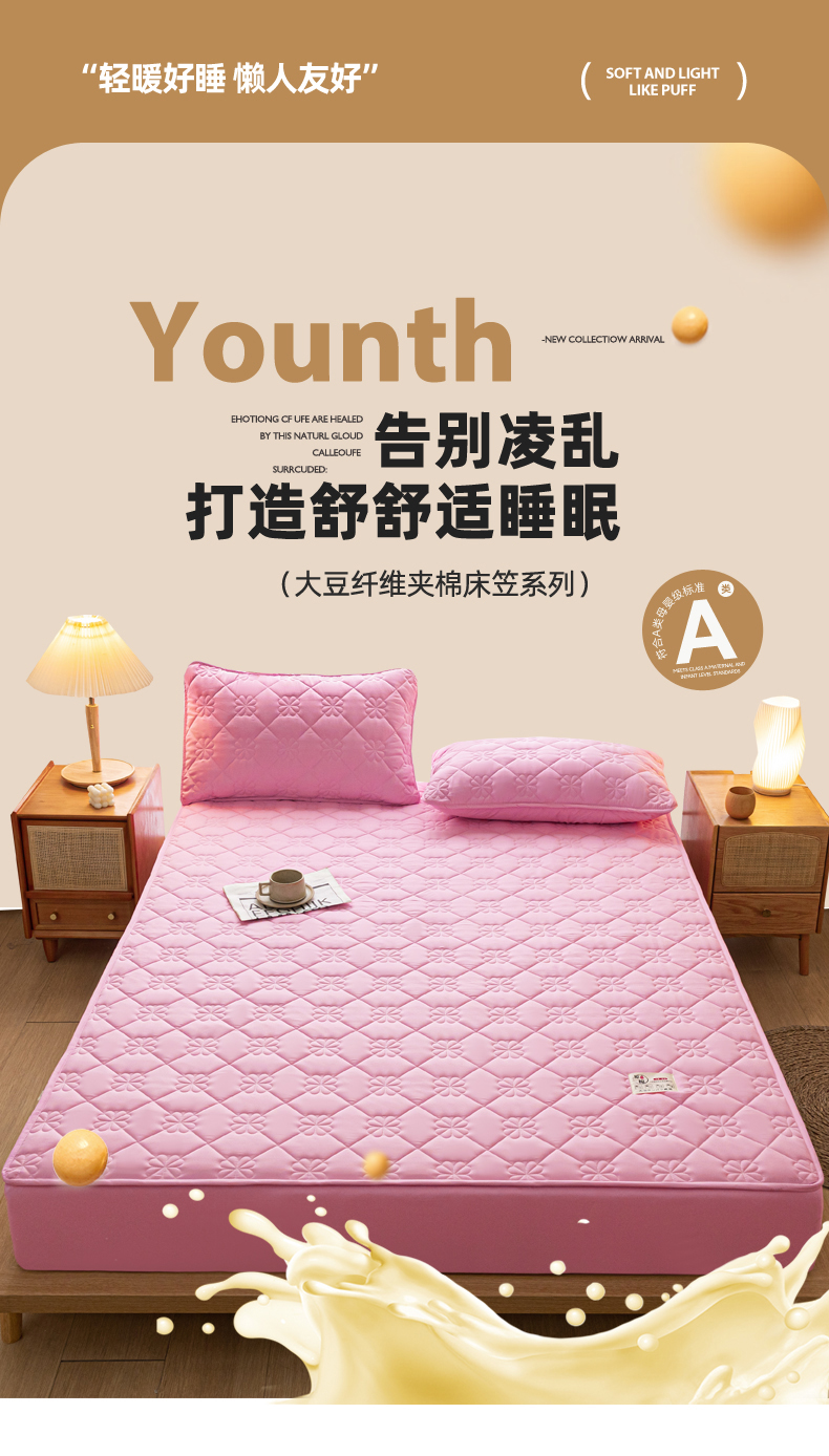 (总)米粒家纺 2023新款A类大豆纤维夹棉床笠系列,格调-白,格调-粉,格调-卡其,格调-蓝,格调-浅灰,格调-深灰,幸运花-白,幸运花-粉,幸运花-卡其,幸运花-蓝,幸运花-浅灰,幸运花-深灰