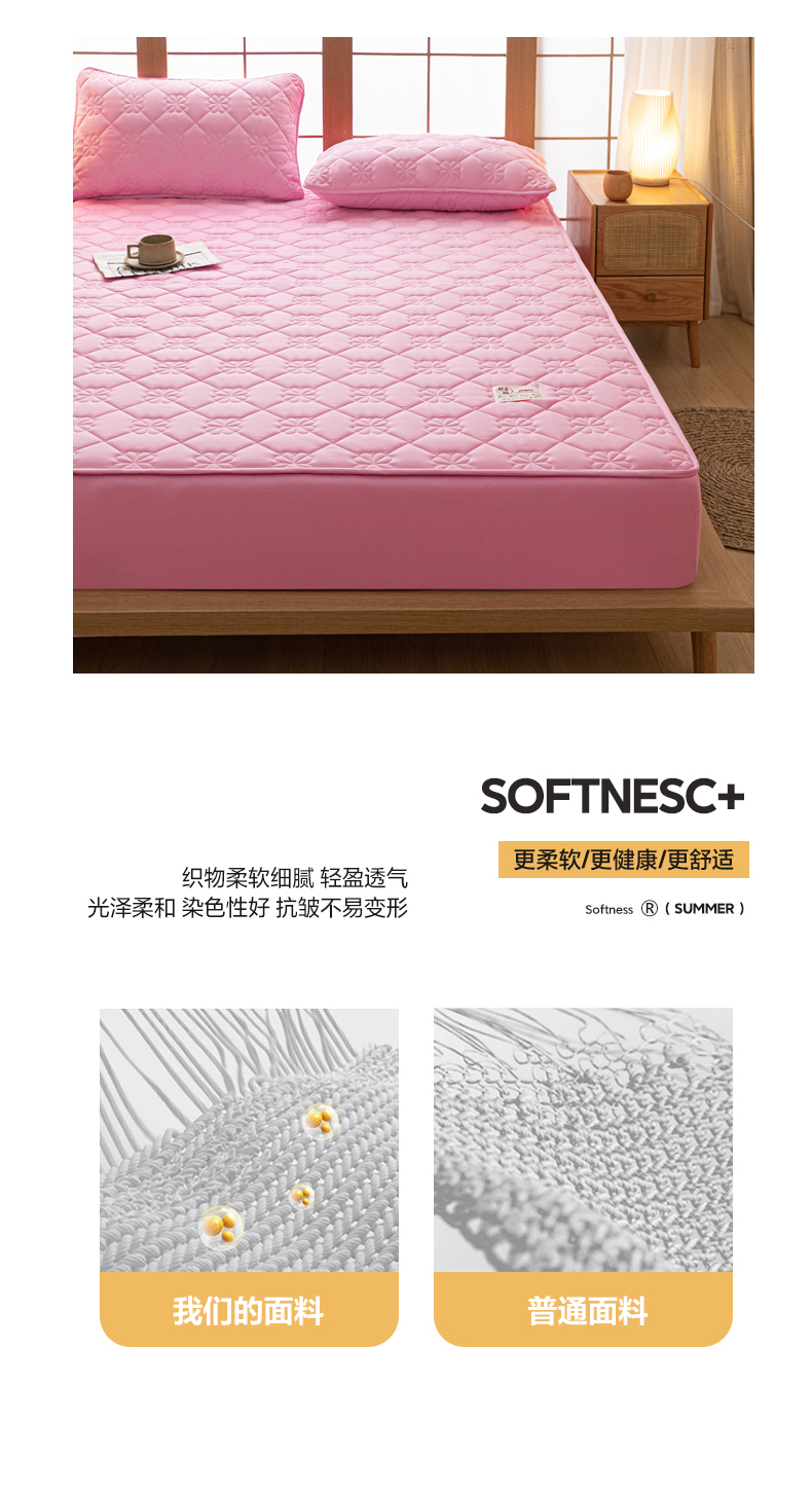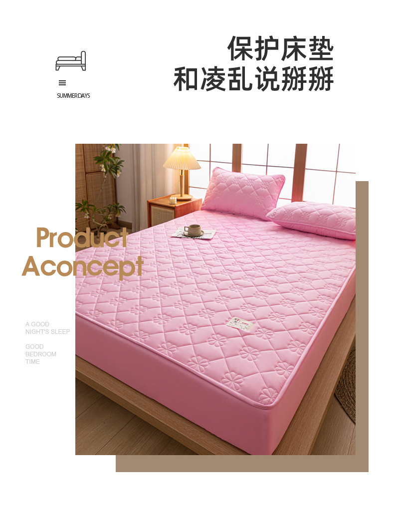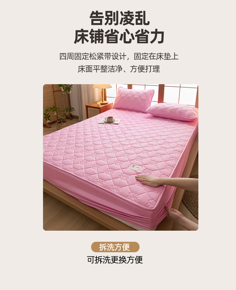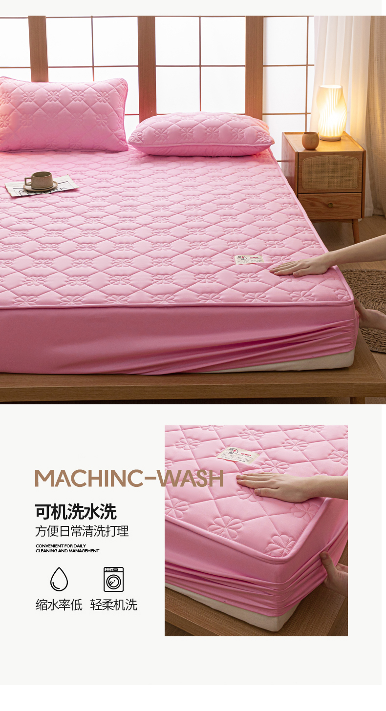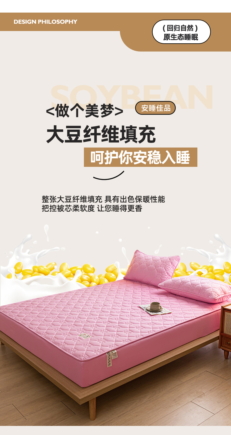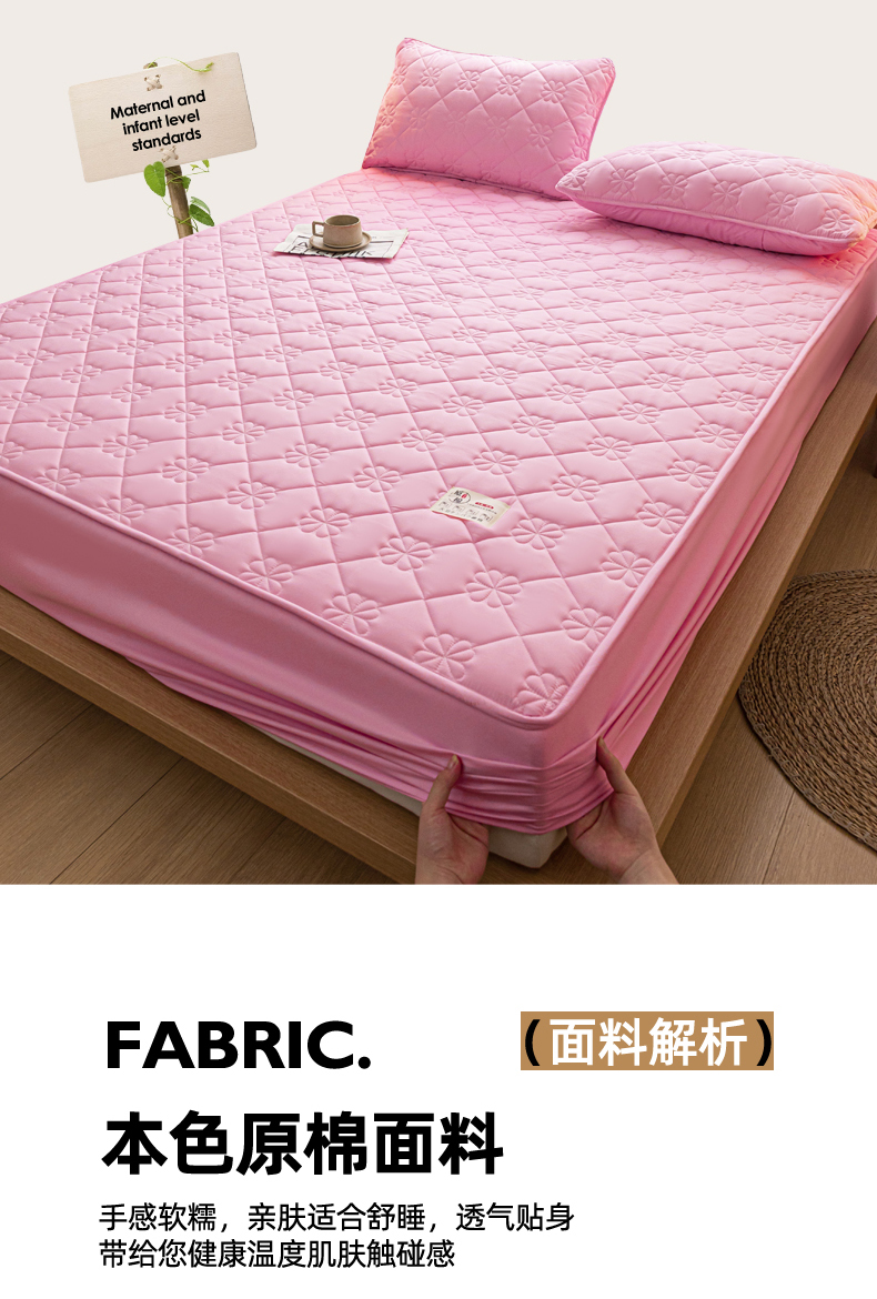 商品名称:米粒家纺 2023新款A类大豆纤维夹棉床笠系列 幸运花-粉