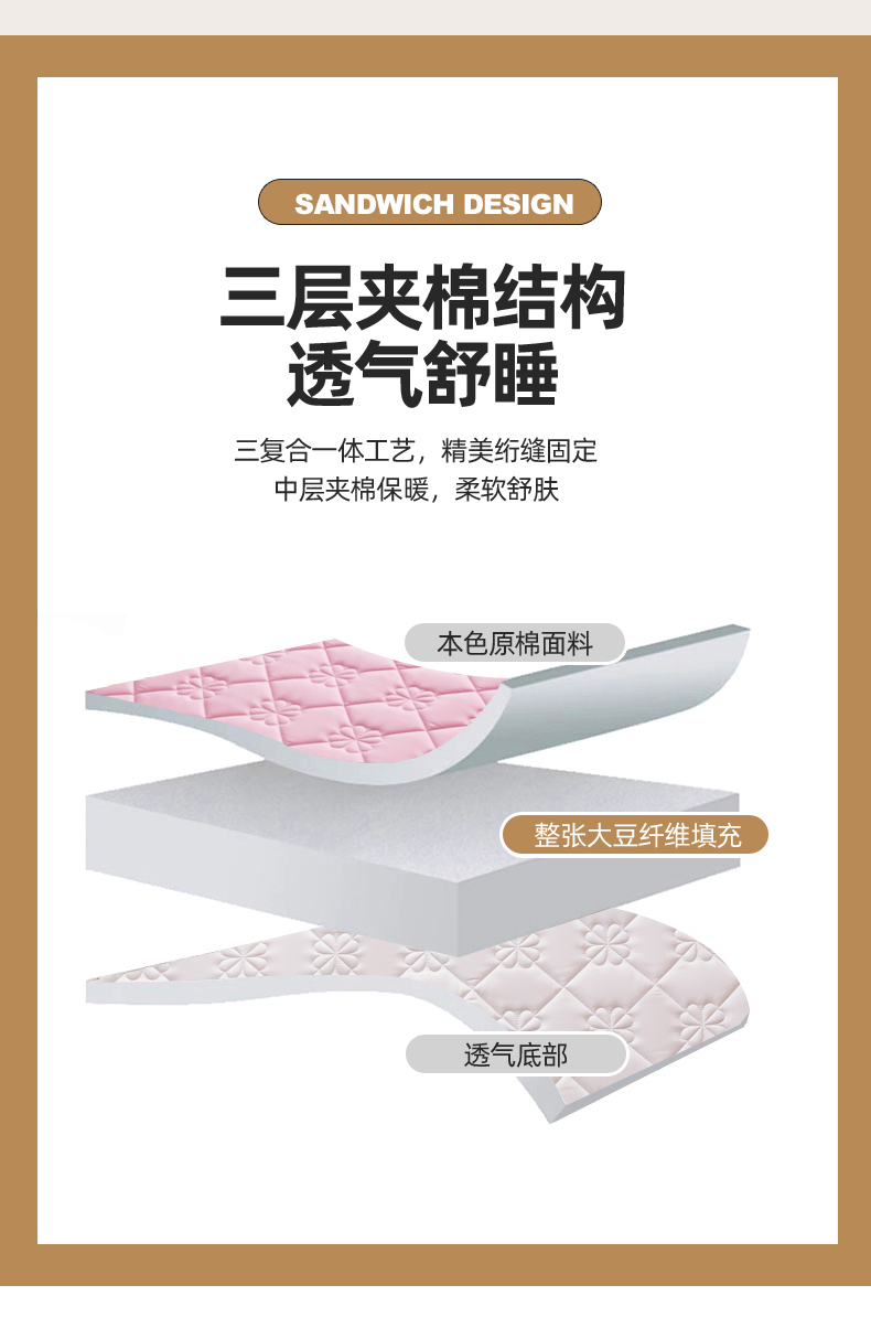 米粒家纺 2023新款A类大豆纤维夹棉床笠系列 幸运花-粉