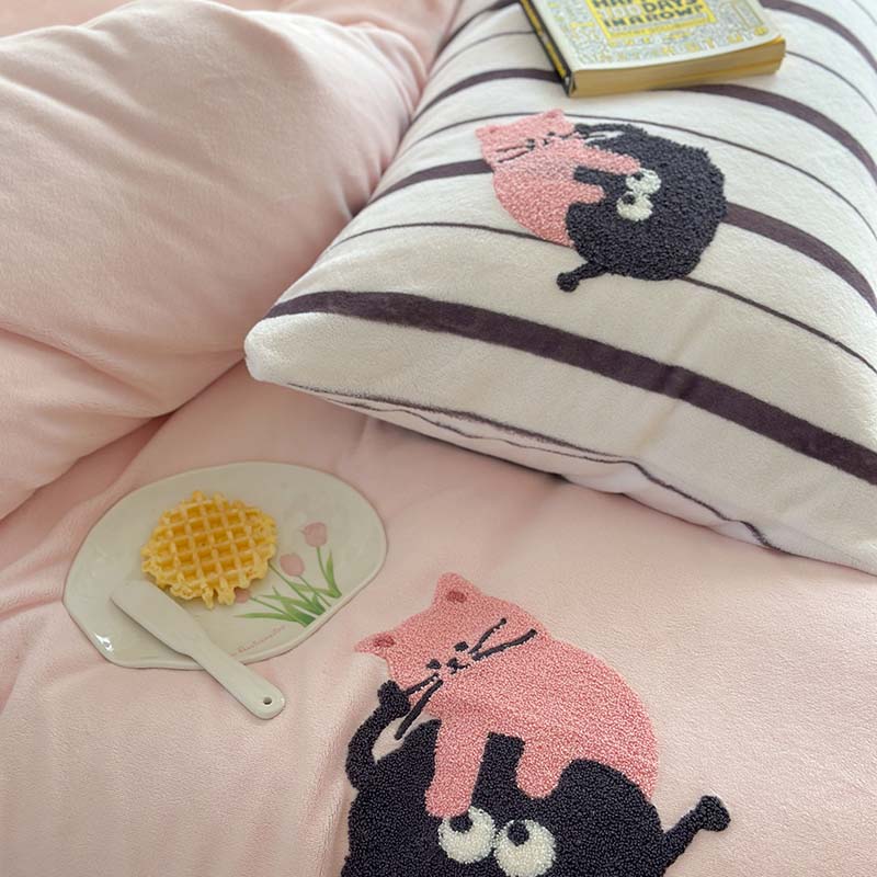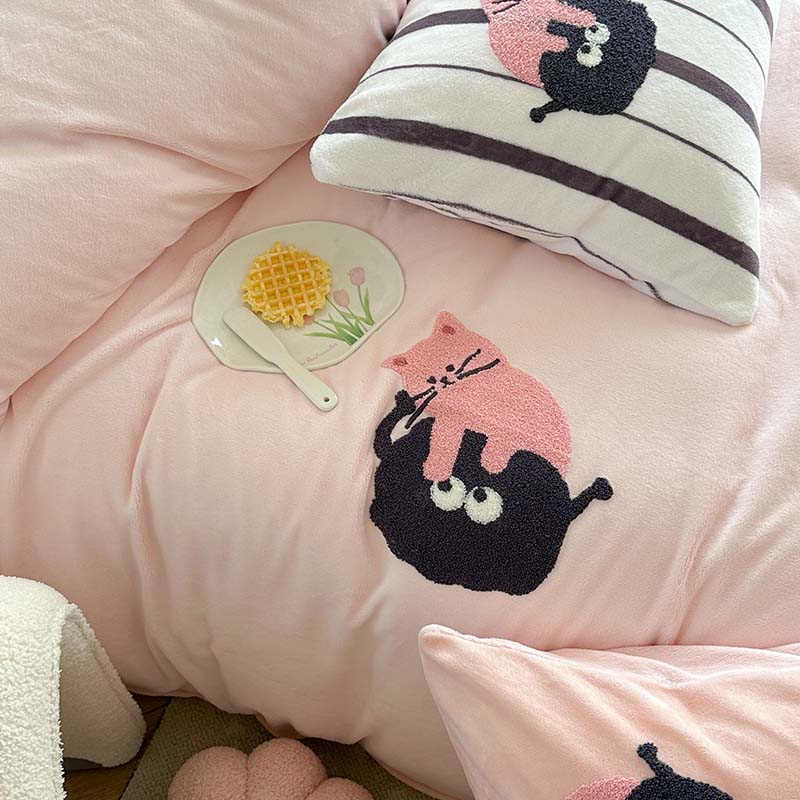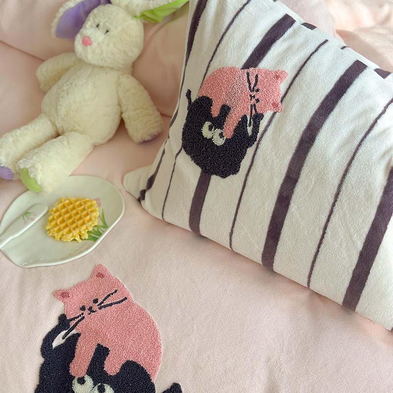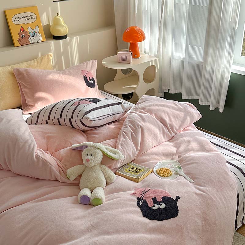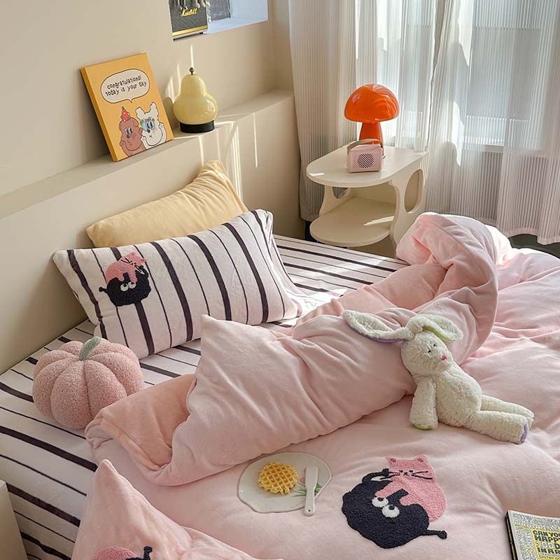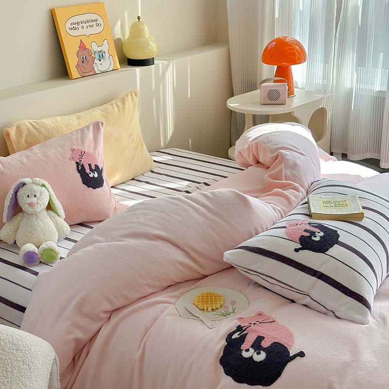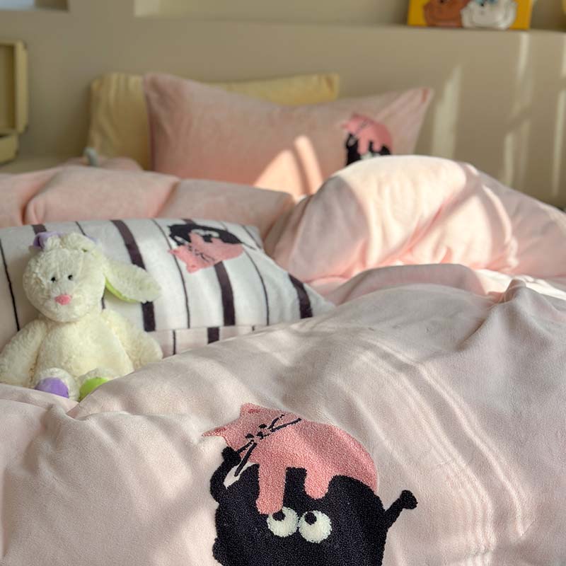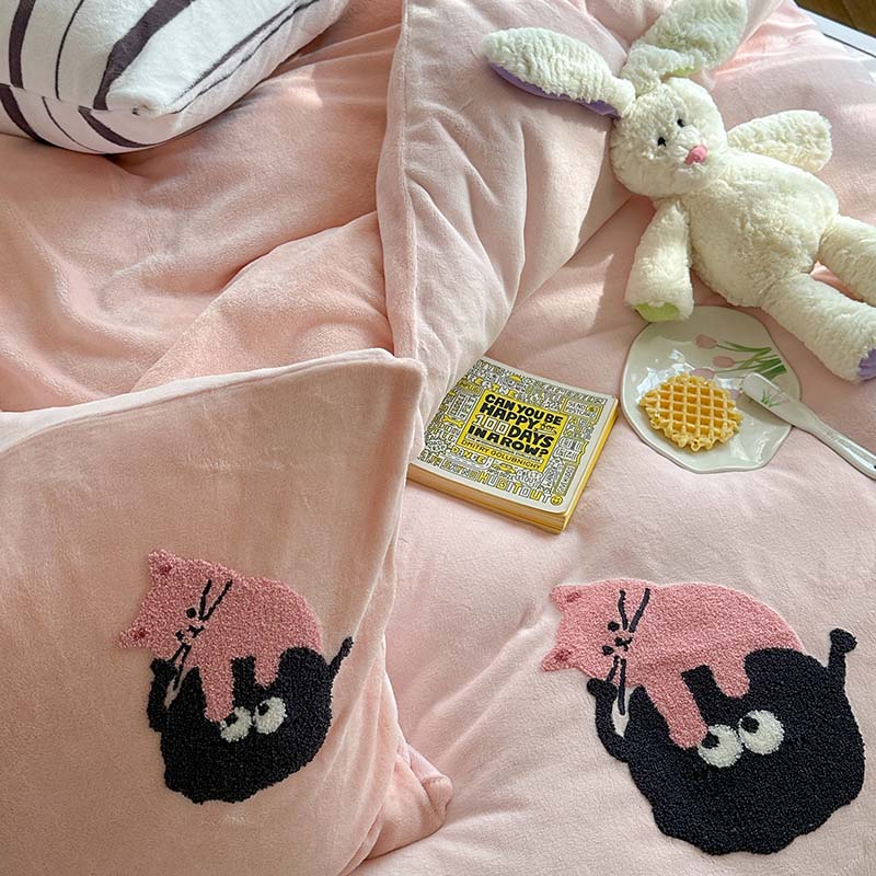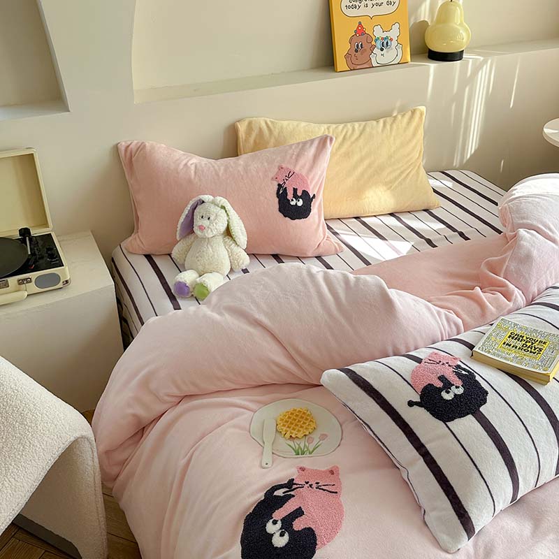 (总)柚子YOUTH 2025新款加厚牛奶绒卡通毛巾绣四件套-印加绣送同款毛毯,蛋糕小狗,公主猫,头套猫,兔兔花园,小伙伴,雪纳瑞