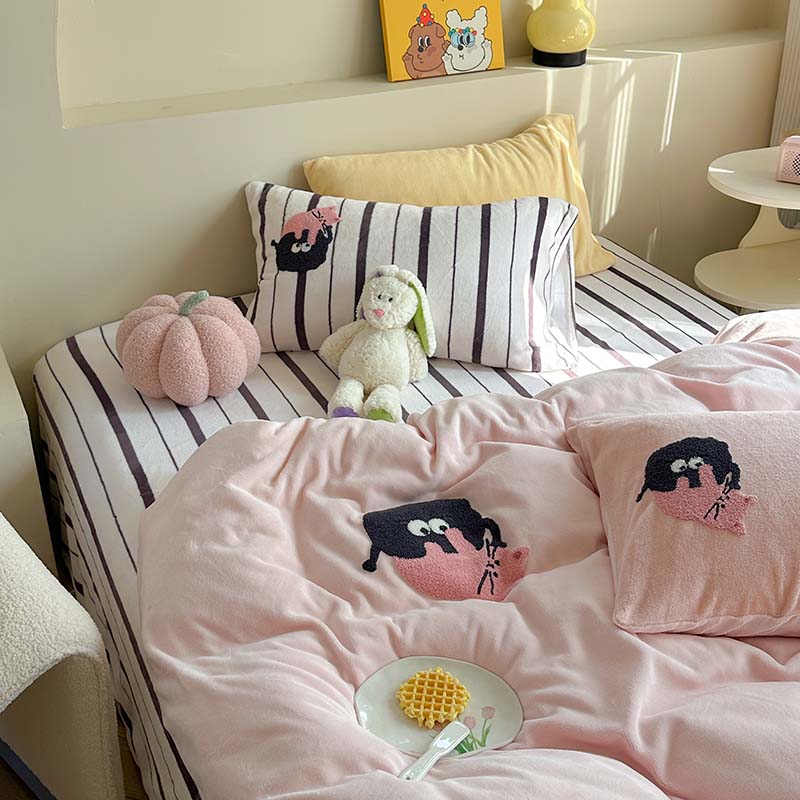 (总)柚子YOUTH 2025新款双面泰迪绒毛巾绣四件套,甜甜圈,快乐企鹅,森林聚会,甜酷KT,小茄子,雪人王国