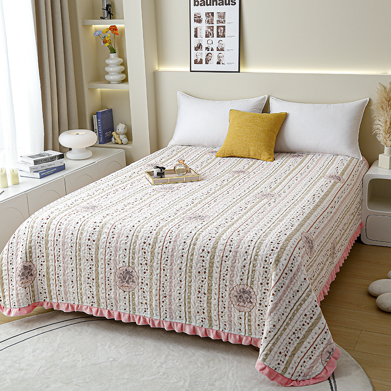 (总)家维 2025年新款牛奶绒床盖花边款床盖,缤纷情人节(绿),繁星点点,方格,花香满地,可爱熊,浪漫满屋,香间,小煤球,熊猫墩墩