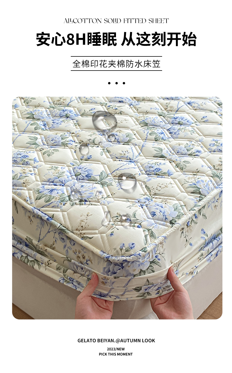 (总)福来临家纺 2025新款13372夹棉防水全棉床笠