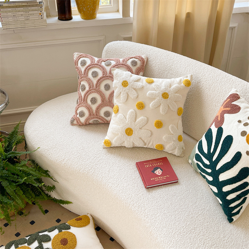 918拾朵家居 2023新款田园风圈绒刺绣抱枕 太阳花