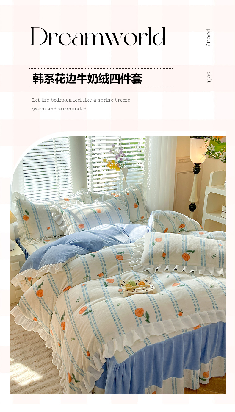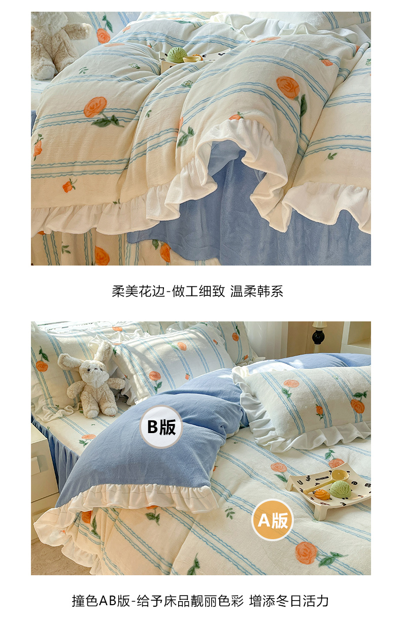 (总)金盛皇朝家纺 2024新款双层花边牛奶绒夹棉床盖四件套,繁花米兔,花影如梦,萌宝熊猫,甜甜宝贝,兔兔吉祥,心心相印,悠悠米咖,紫韵格调