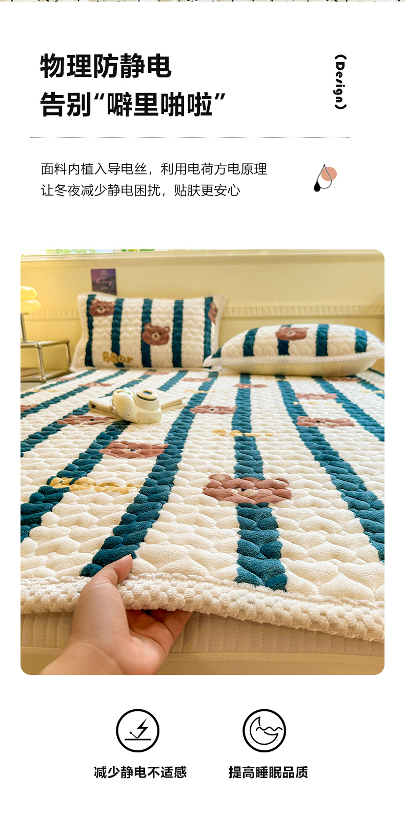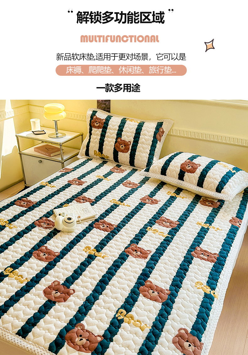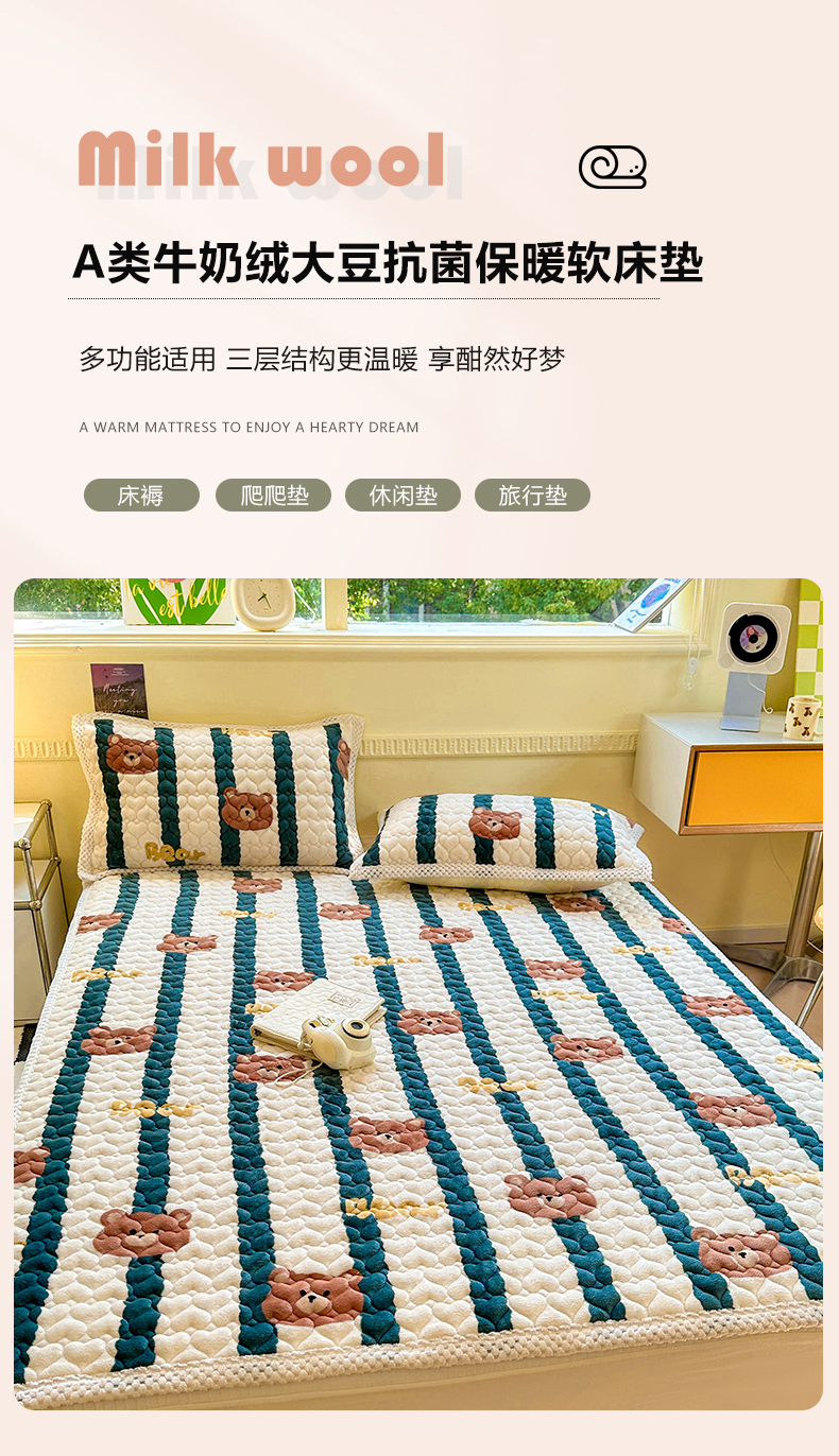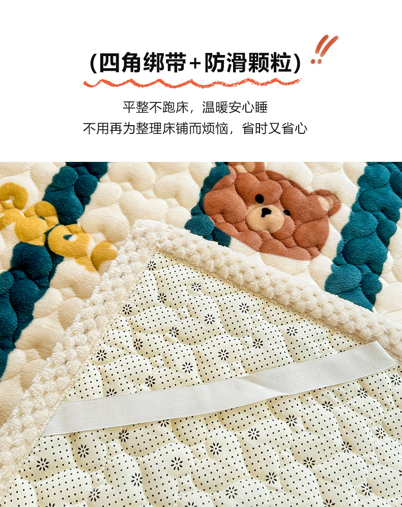 商品名称:宜代光年 2023新款牛奶绒夹棉床垫床盖 翠床盖-酷米熊