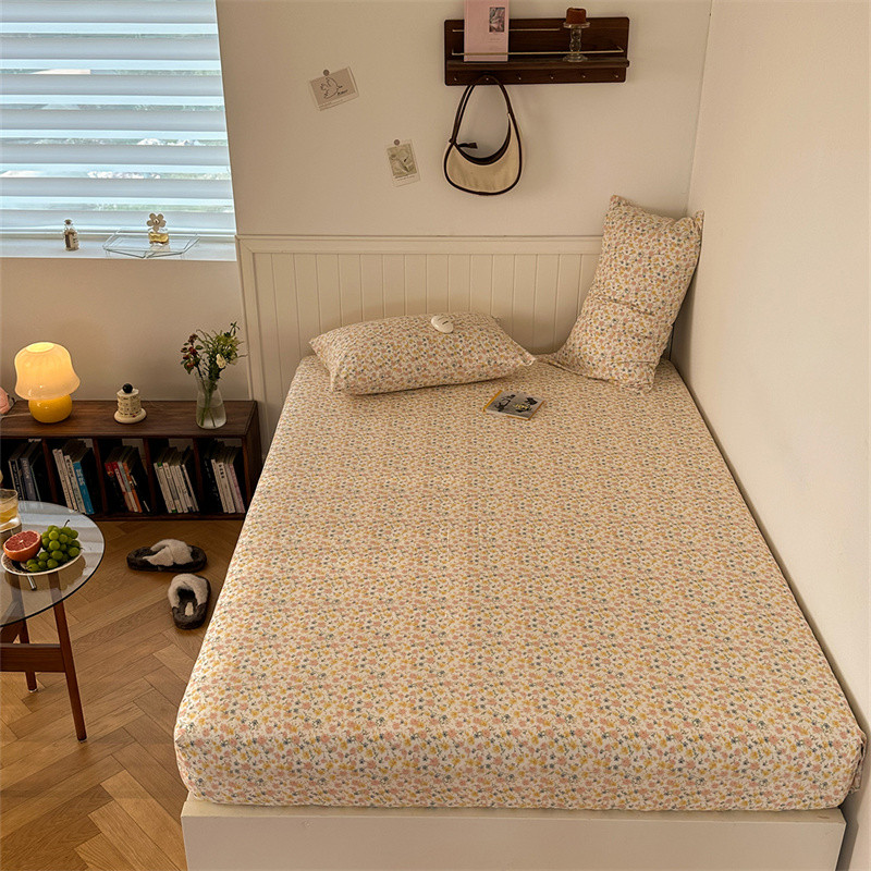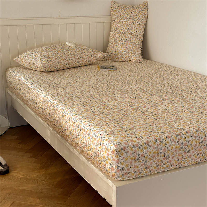 洋铭区 2023新款全棉单品床笠桔粉小花